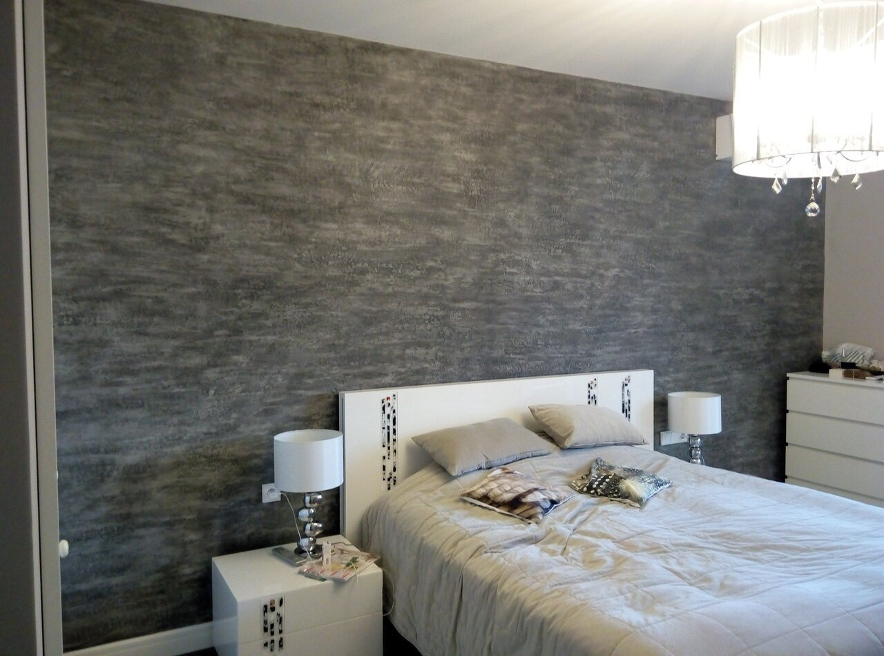 Спальня с декоративной штукатуркой на стенах