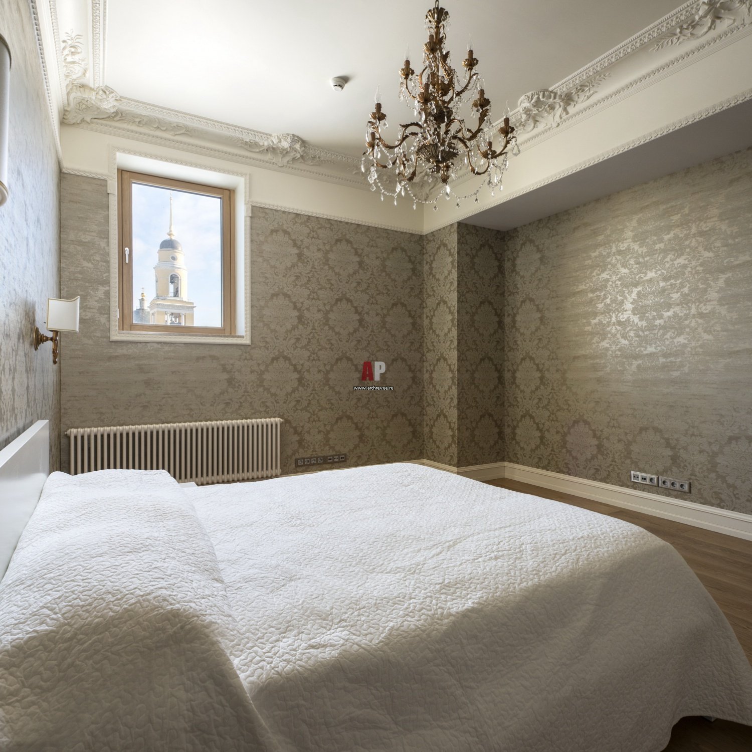 Обои Дамаск в спальне