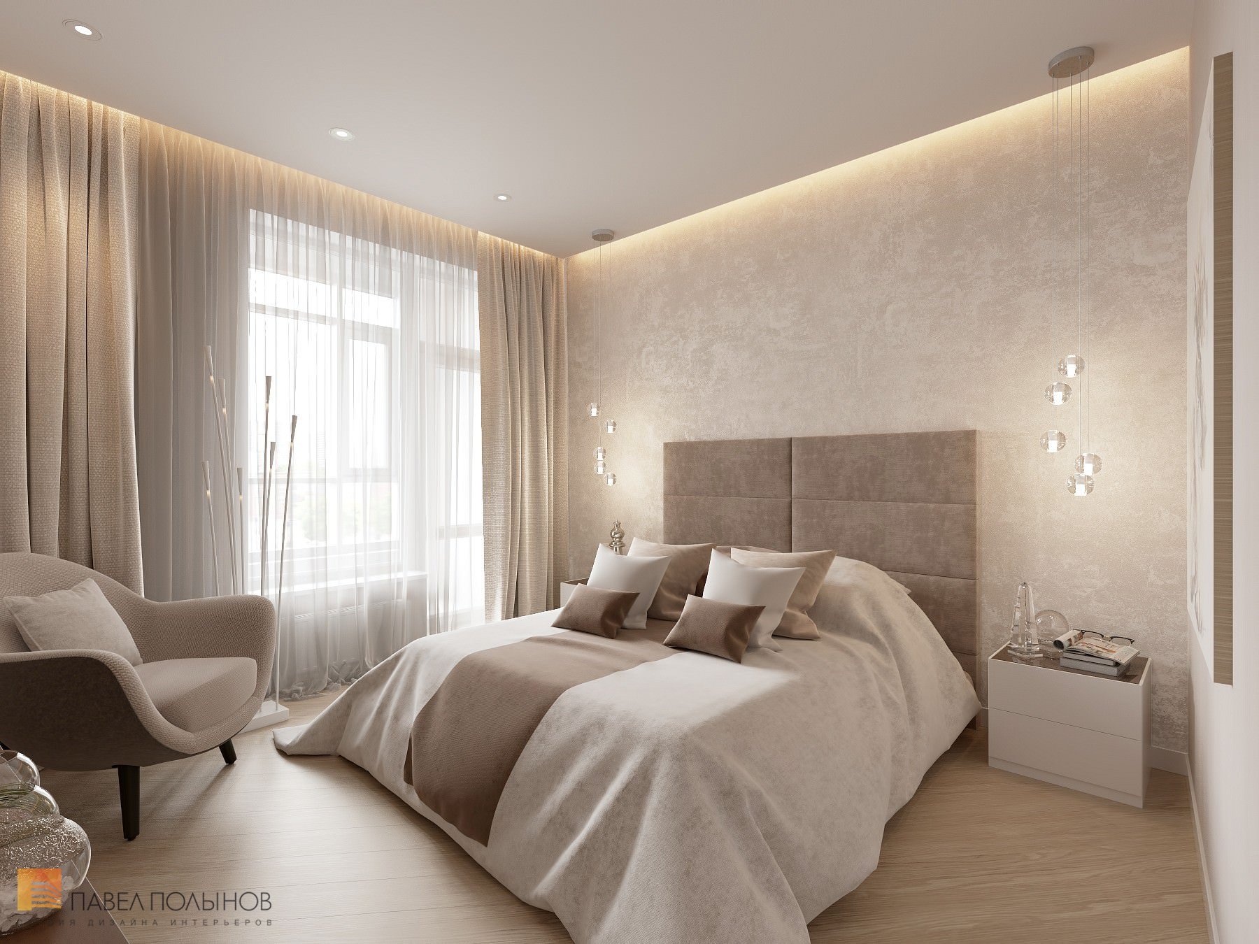 Современная спальня в бежевых тонах