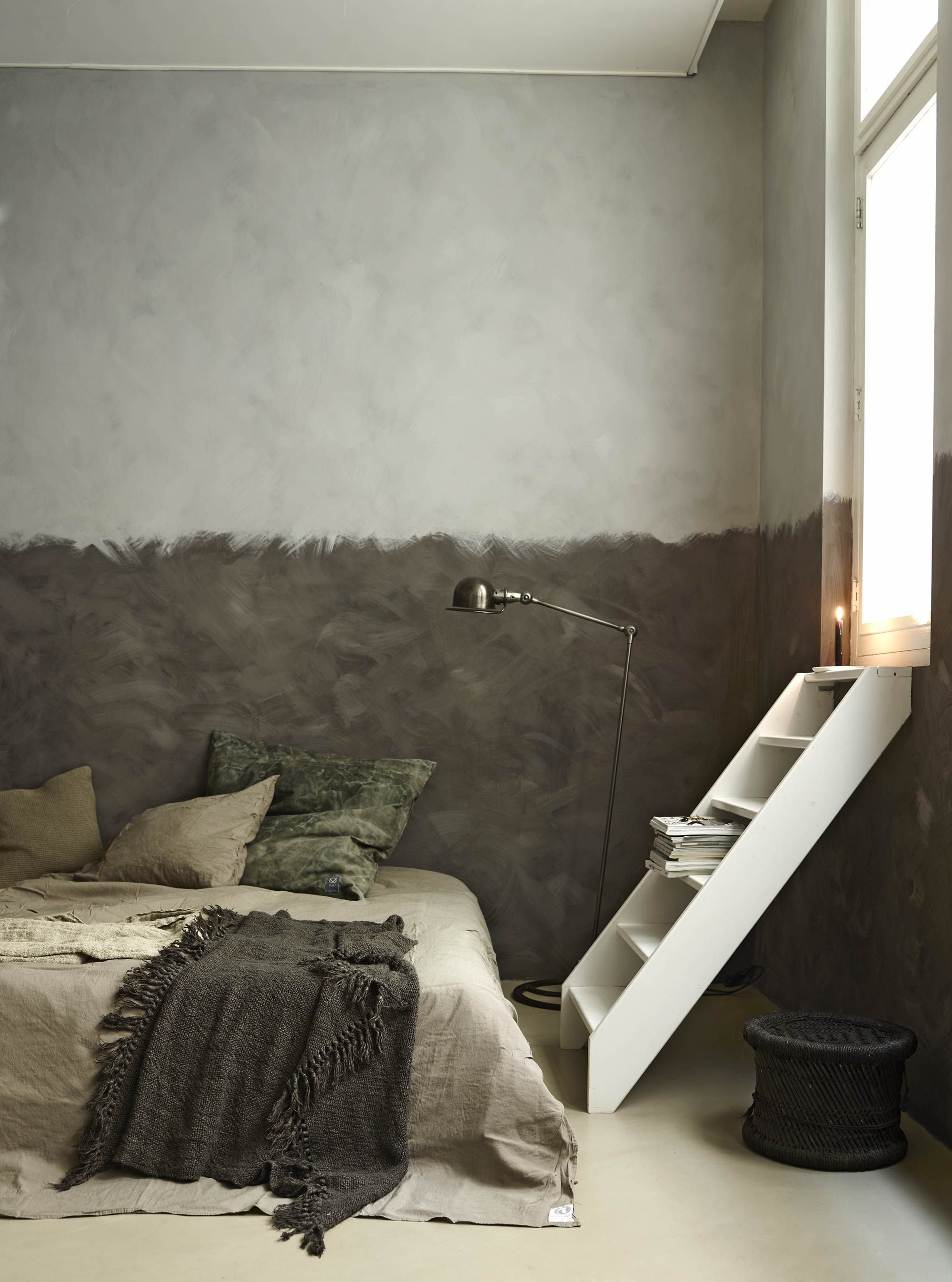 Серая венецианская штукатурка в спальне