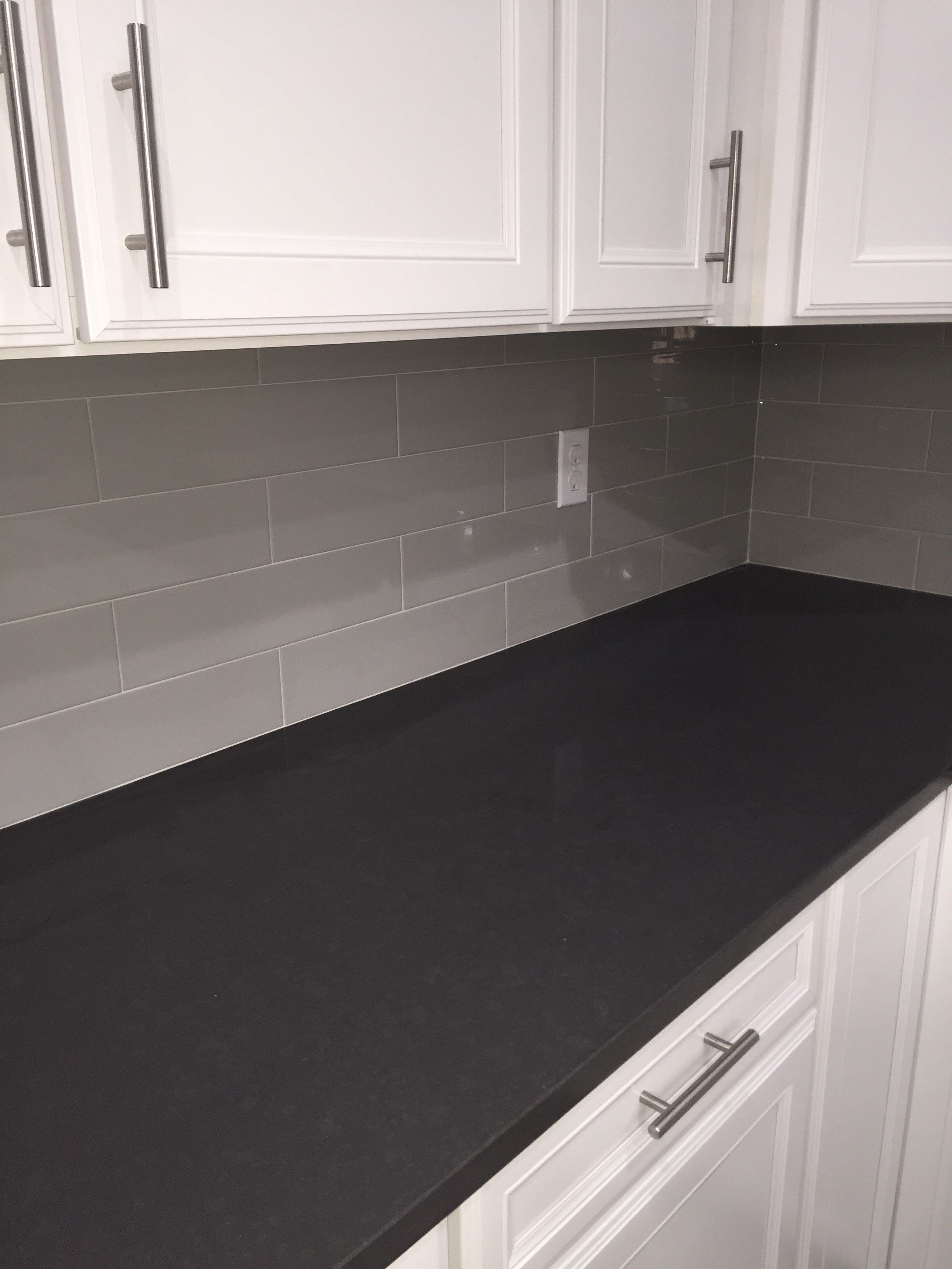 Фартук из плитки для кухни с черной столешницей