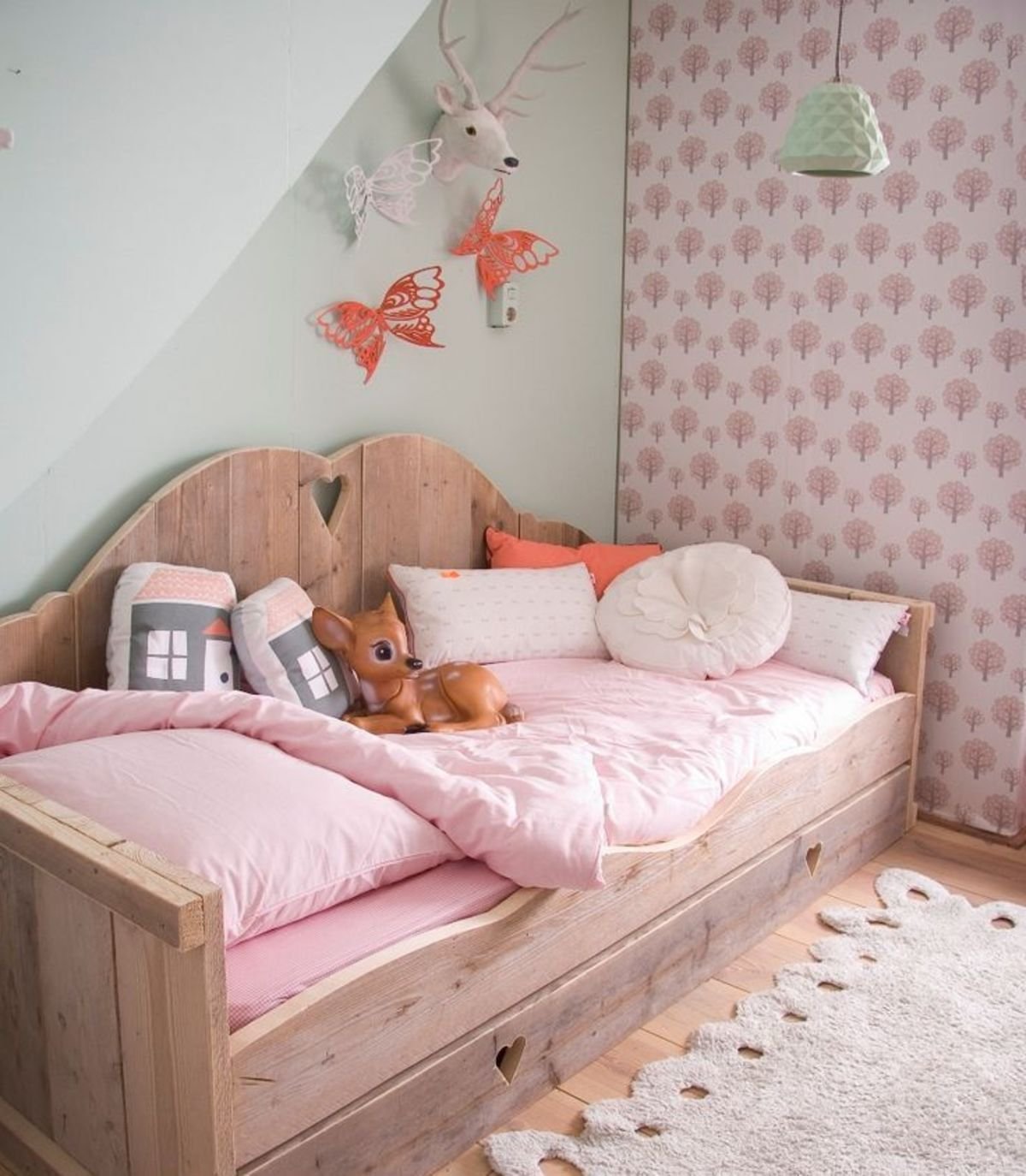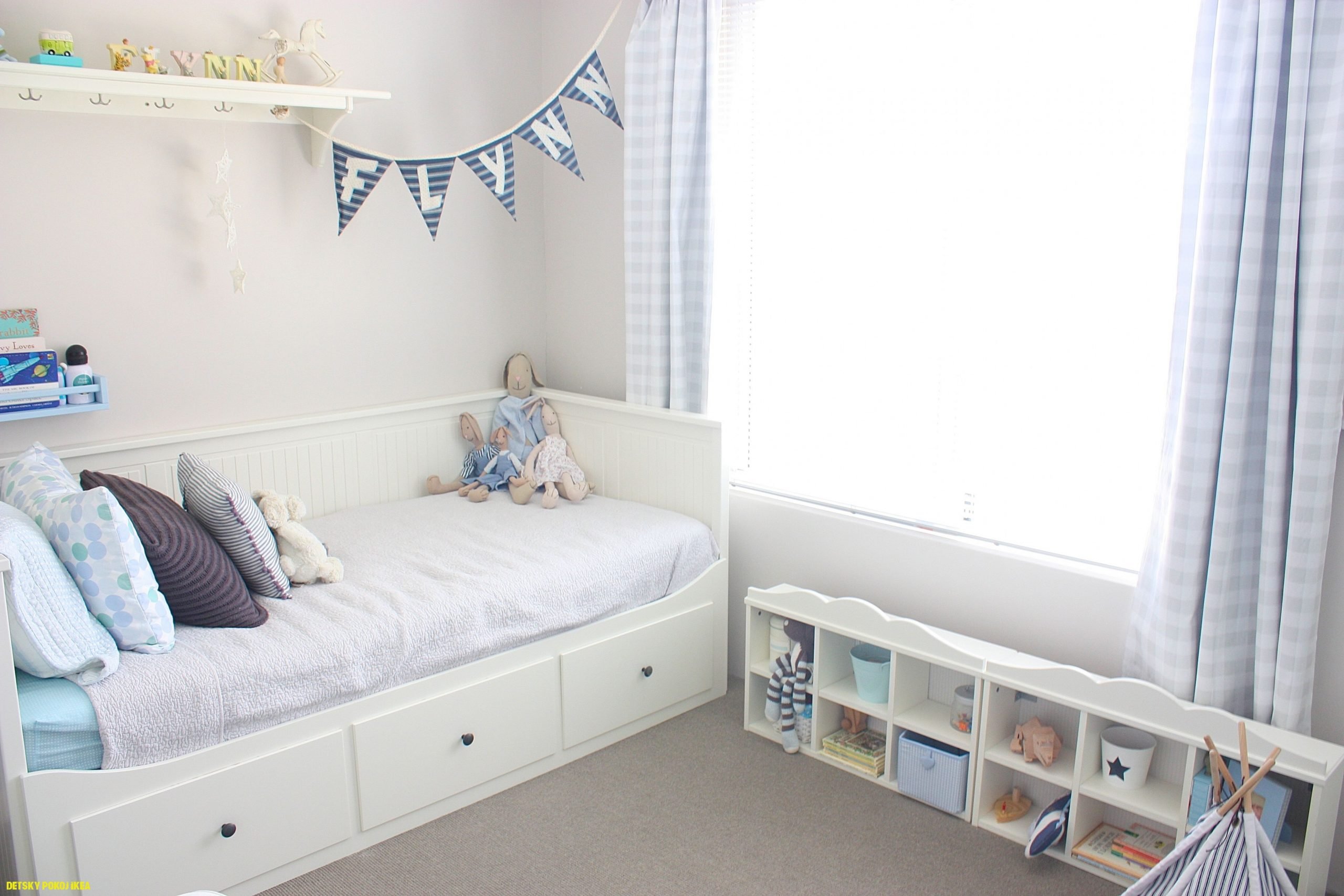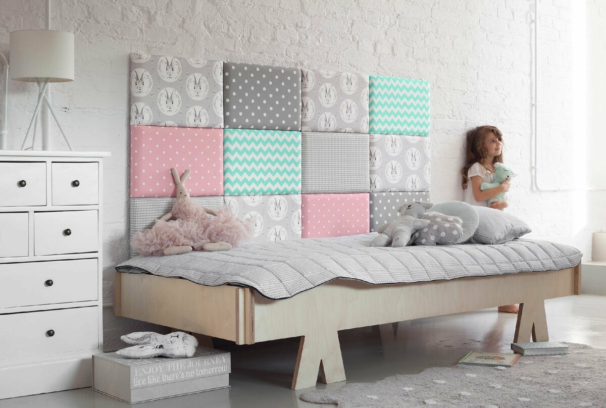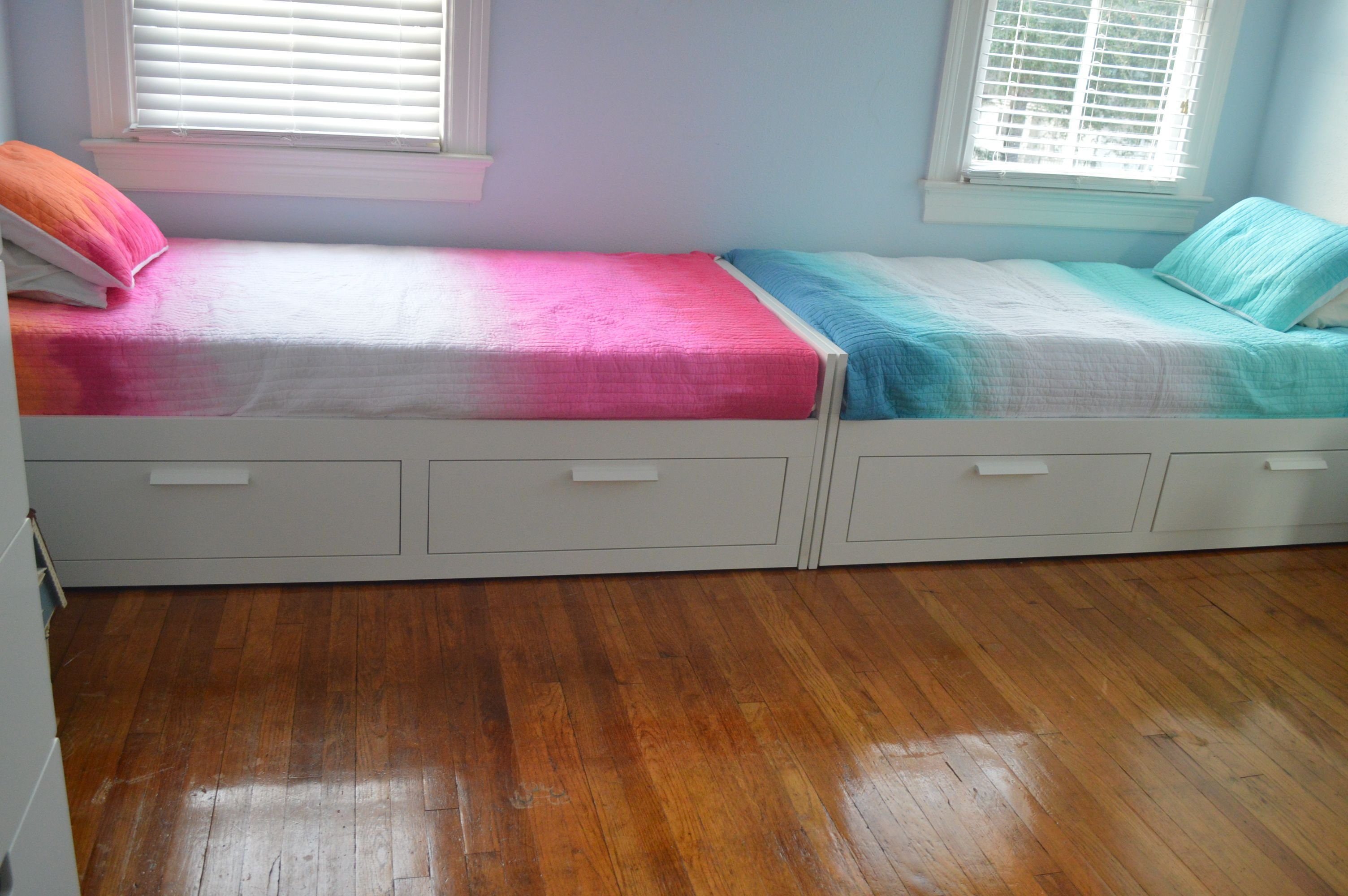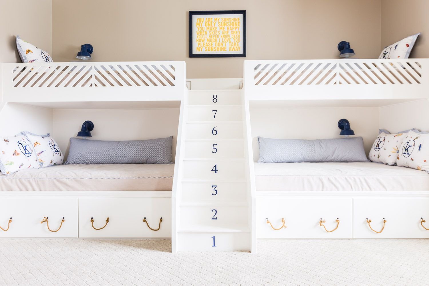 Детская с двумя кроватями вдоль одной стены в небольшой комнате