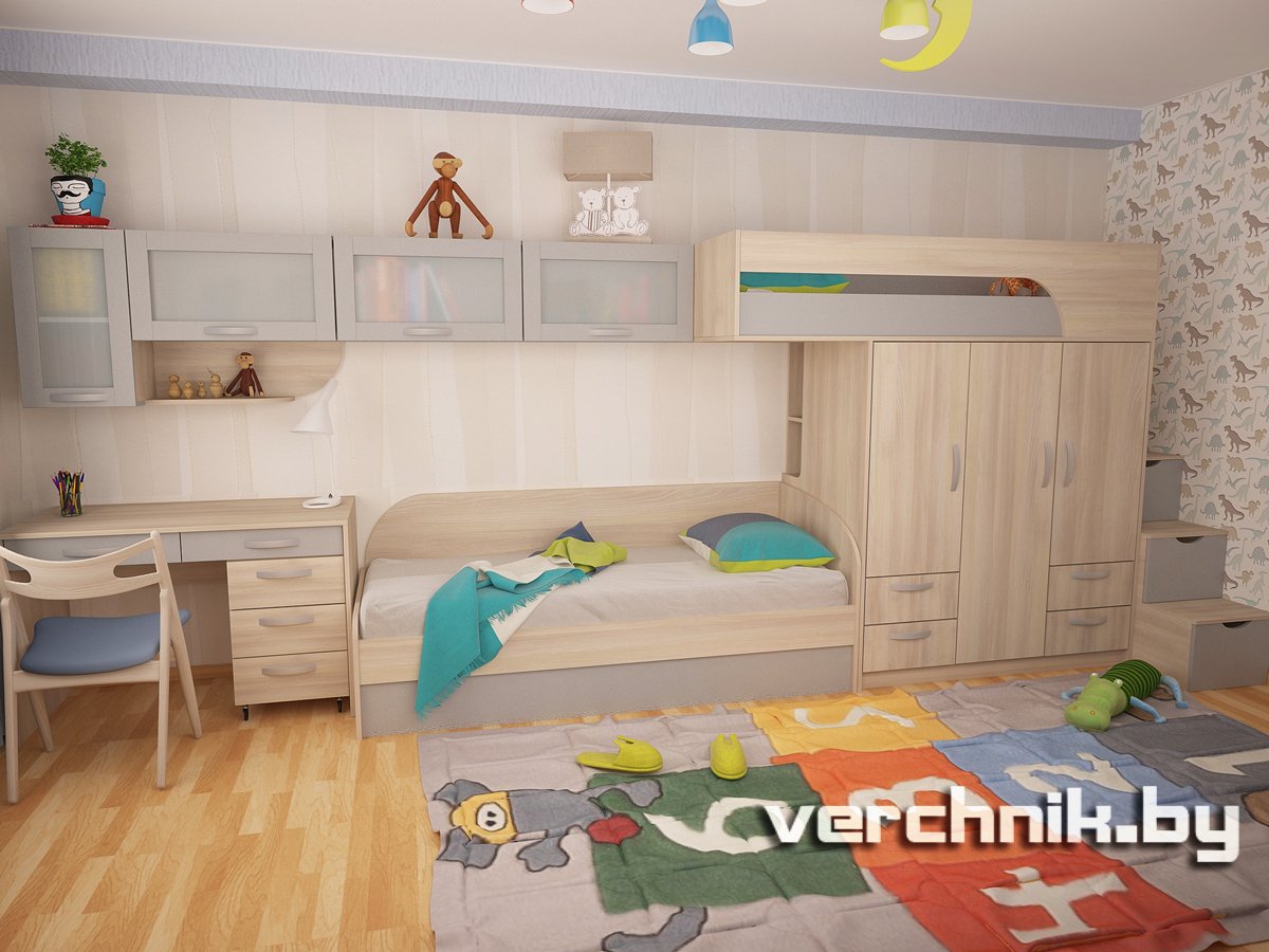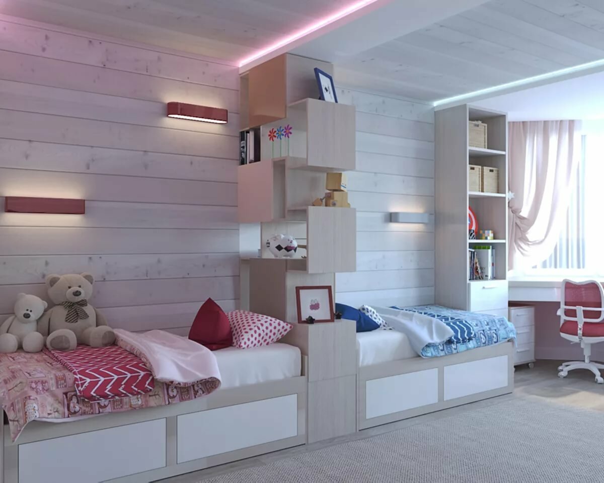 Комната для двоих разнополых подростков 20 кв.м с перегородкой
