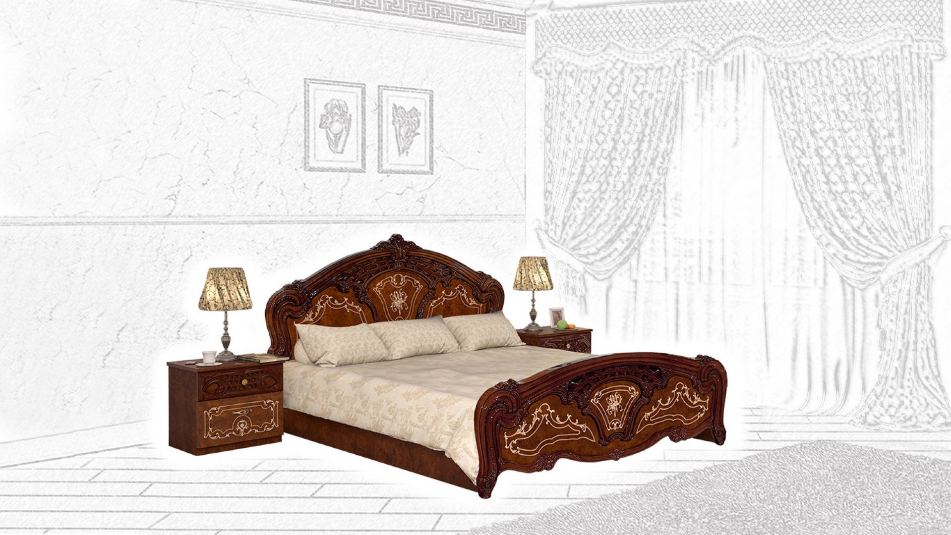Спальня роза диа мебель орех