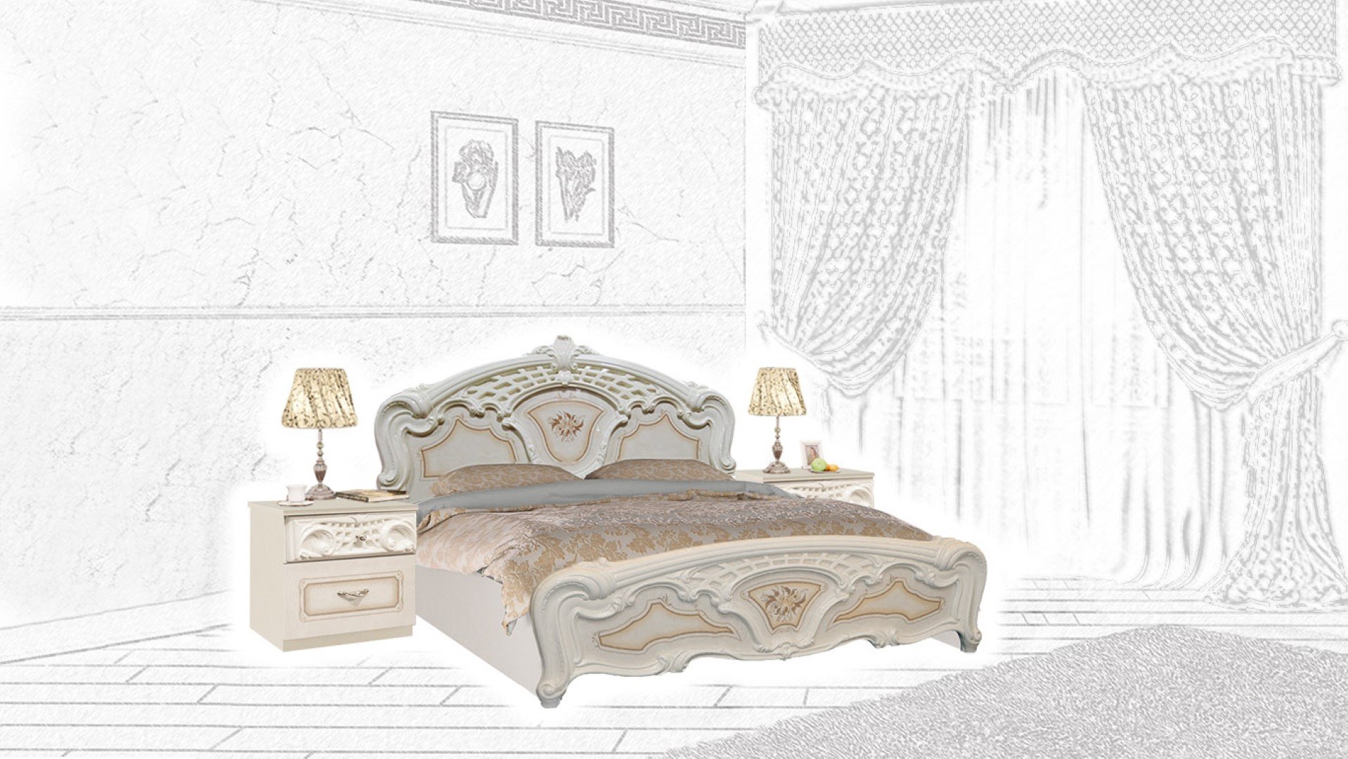 Спальный гарнитур роза бежевый фабрика Интердизайн