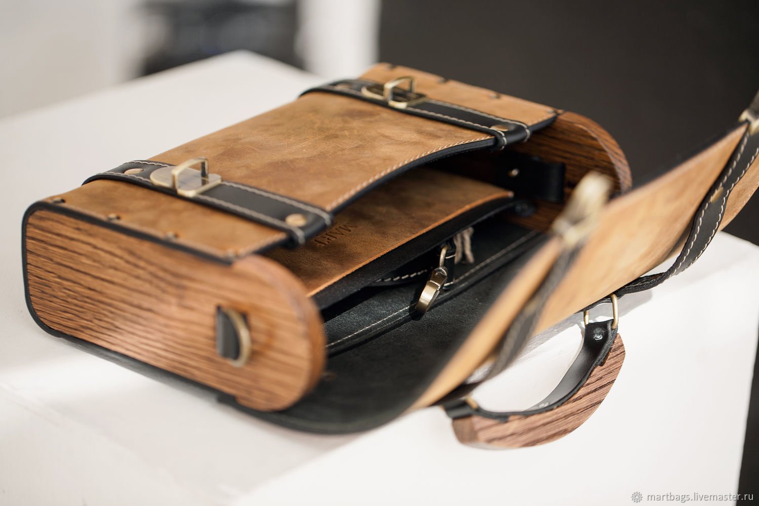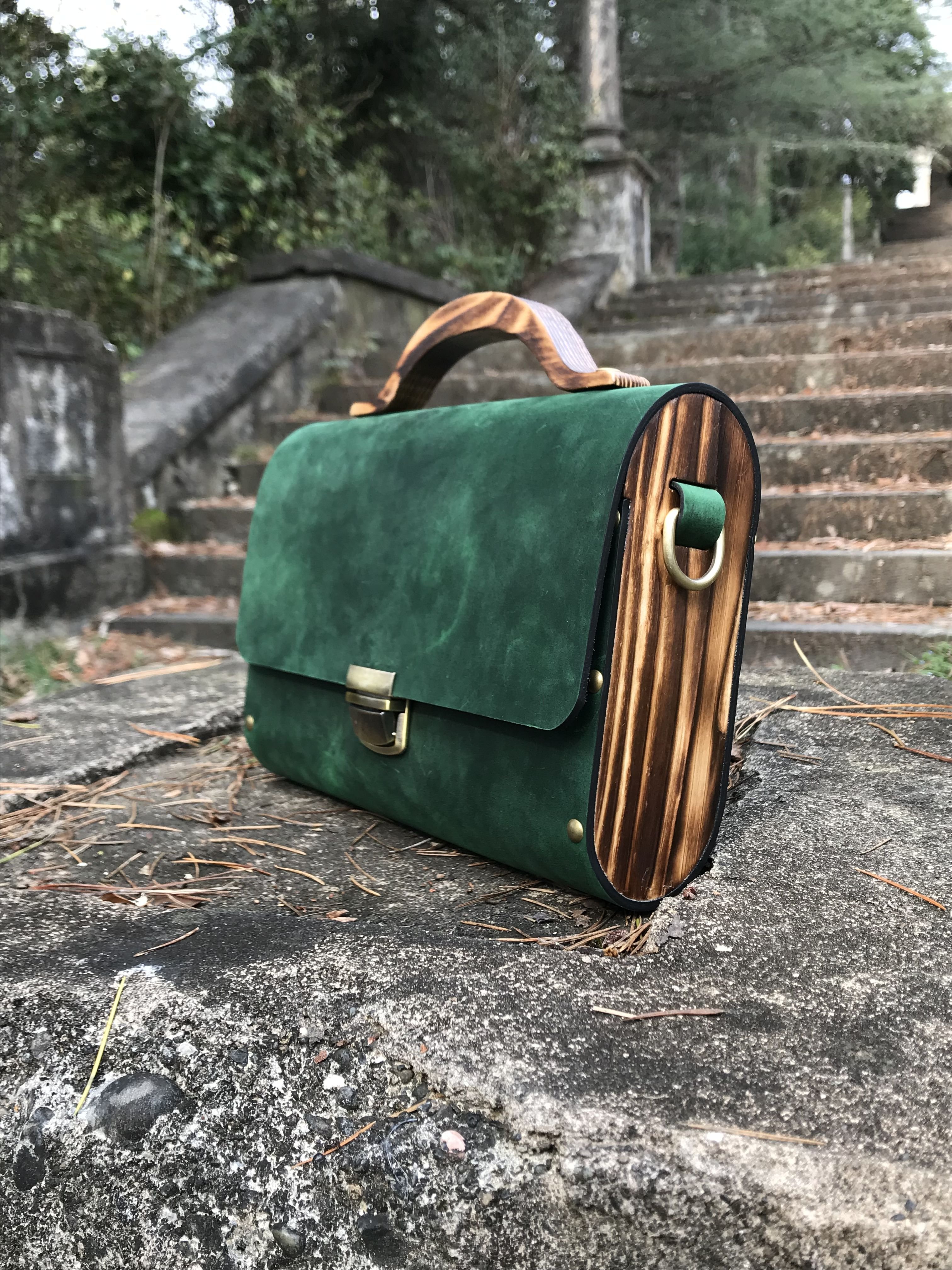 Сумка из кожи и дерева