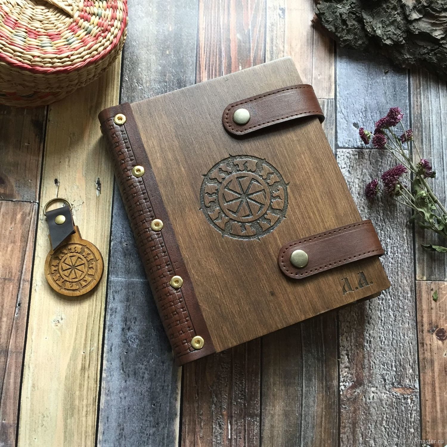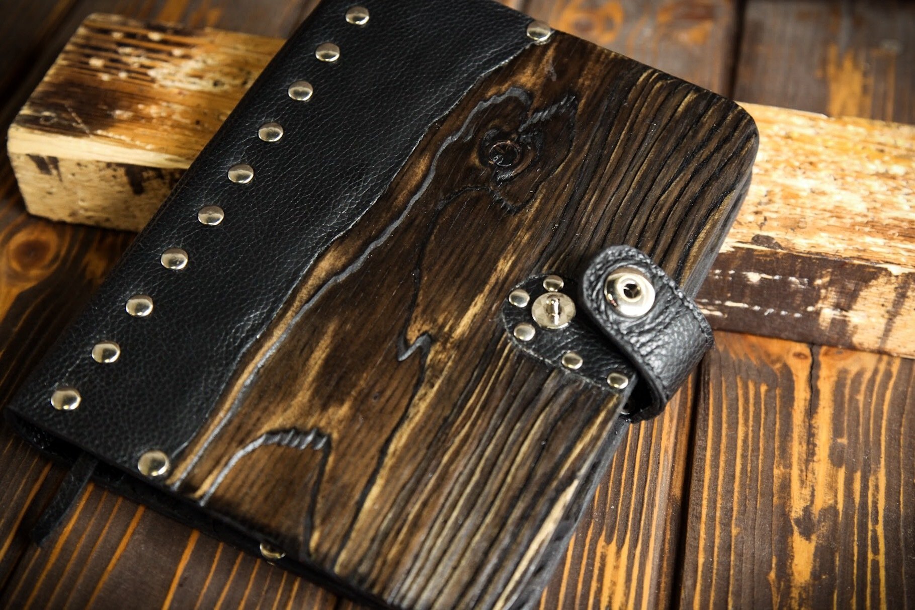 Блокнот из дерева и кожи