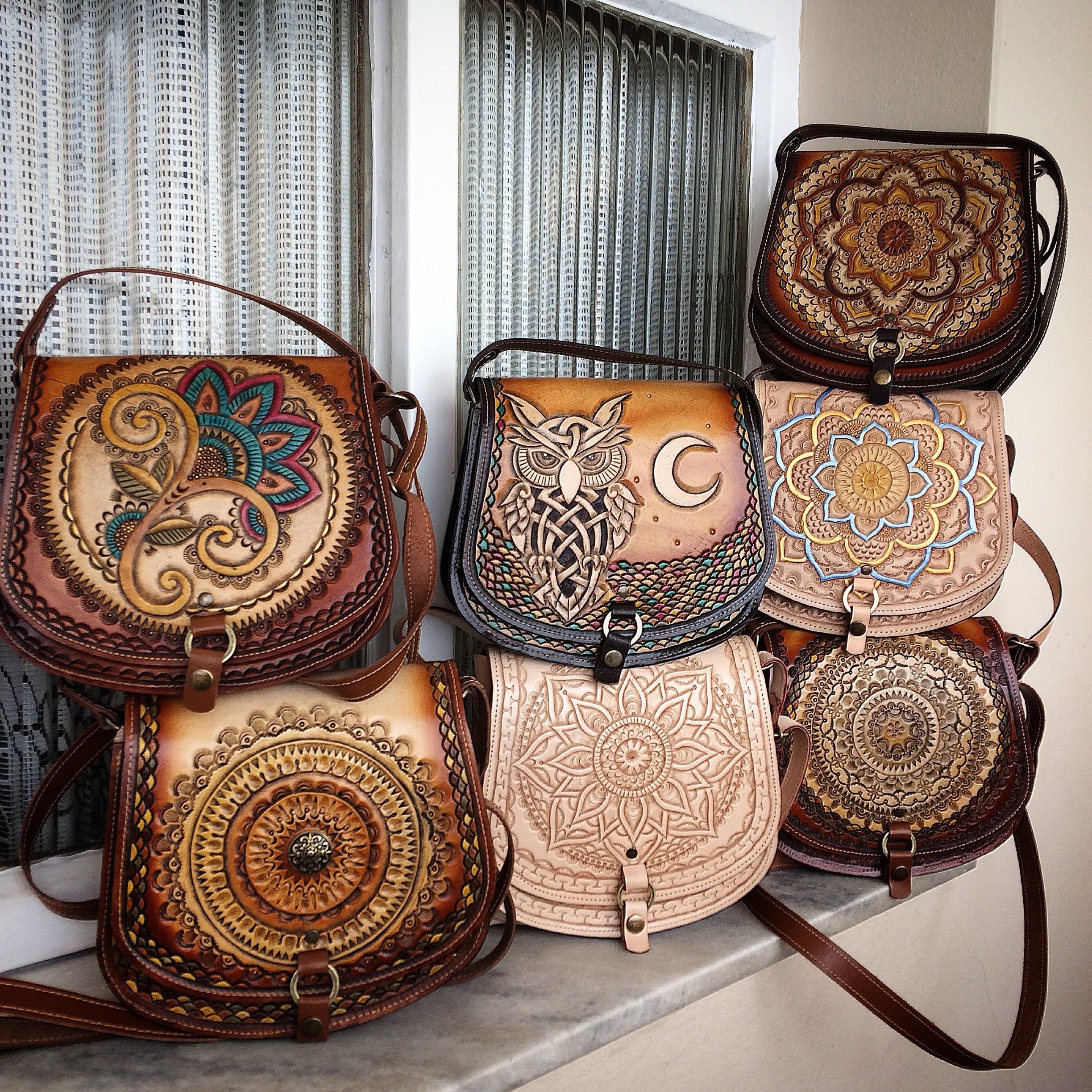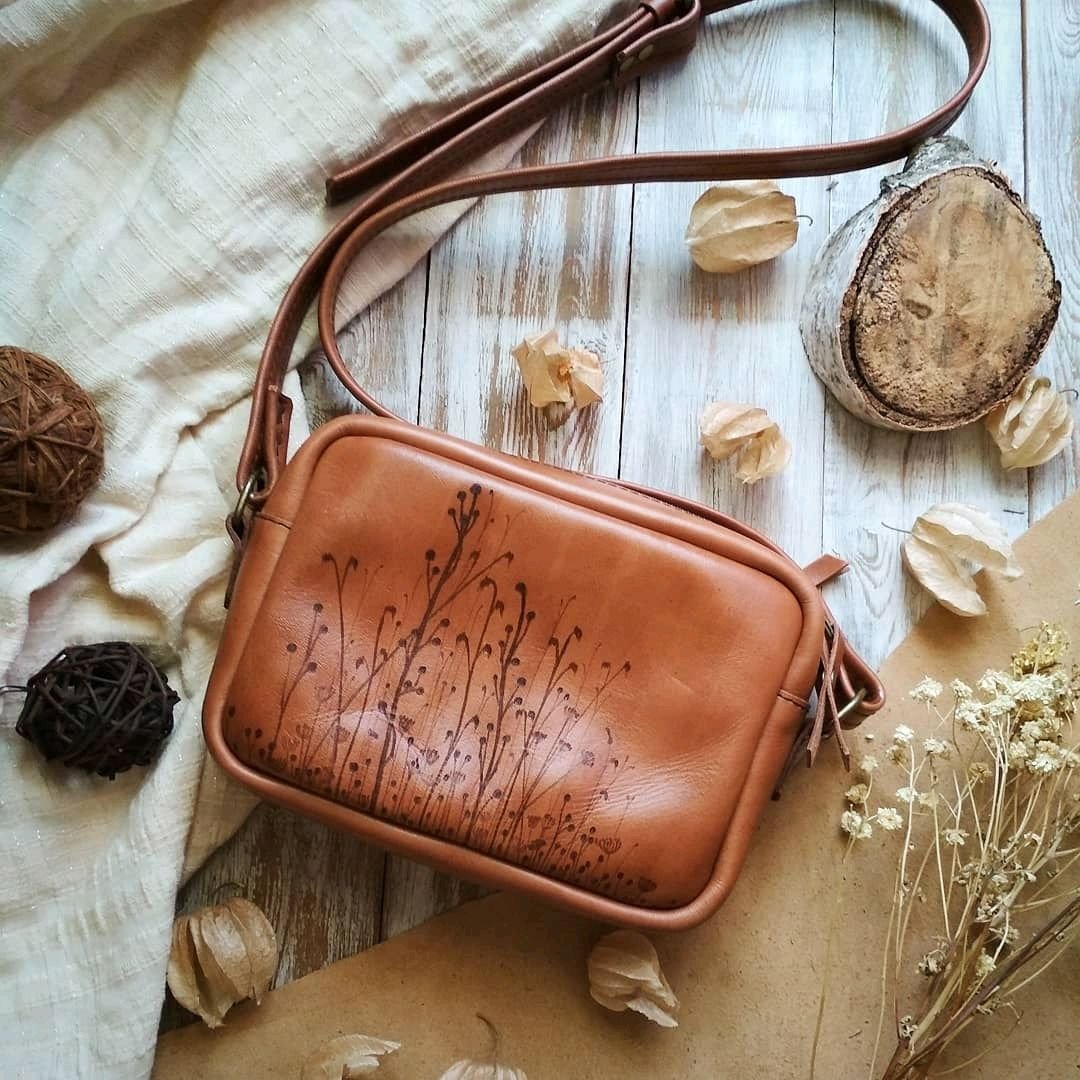 Кожаные сумки с пирографией