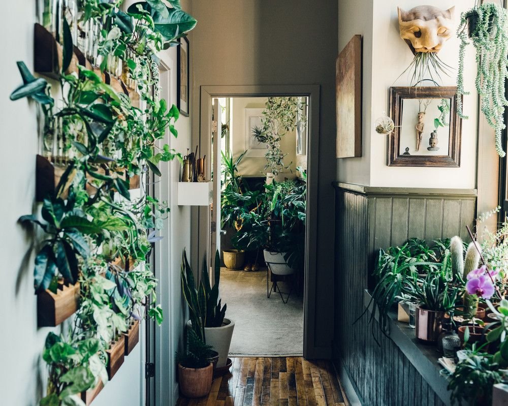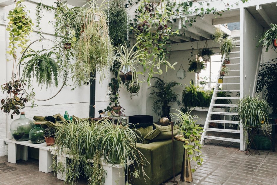Много растений в интерьере