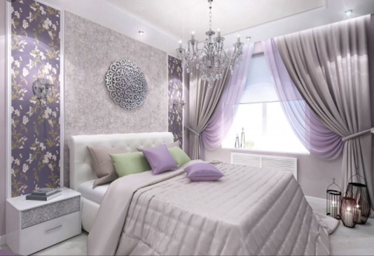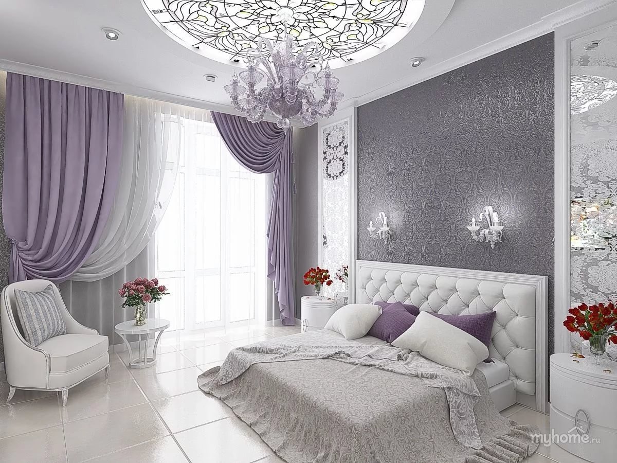 Спальня в сиренево белых тонах