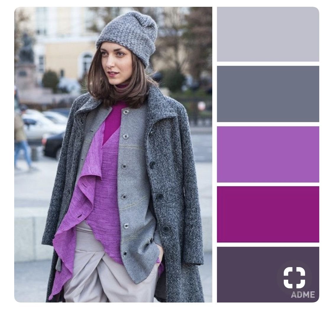 Сочетание серого и фиолетового в одежде