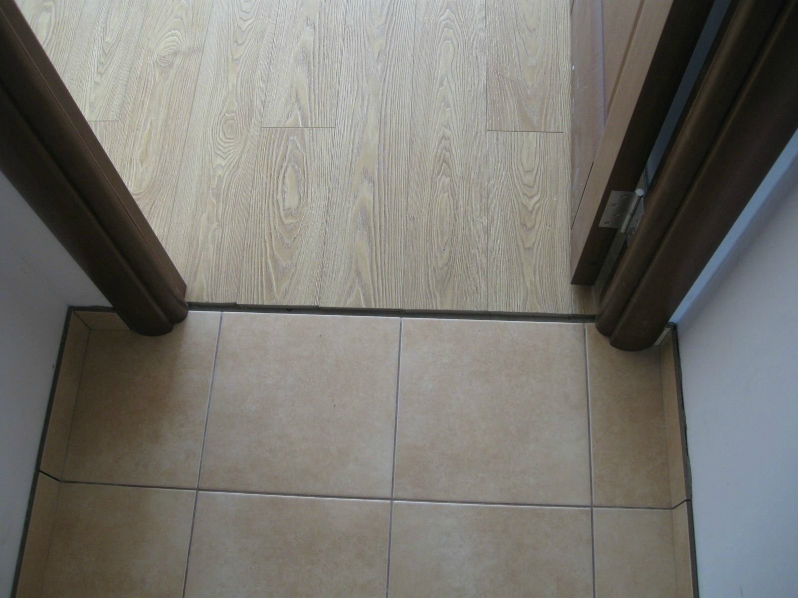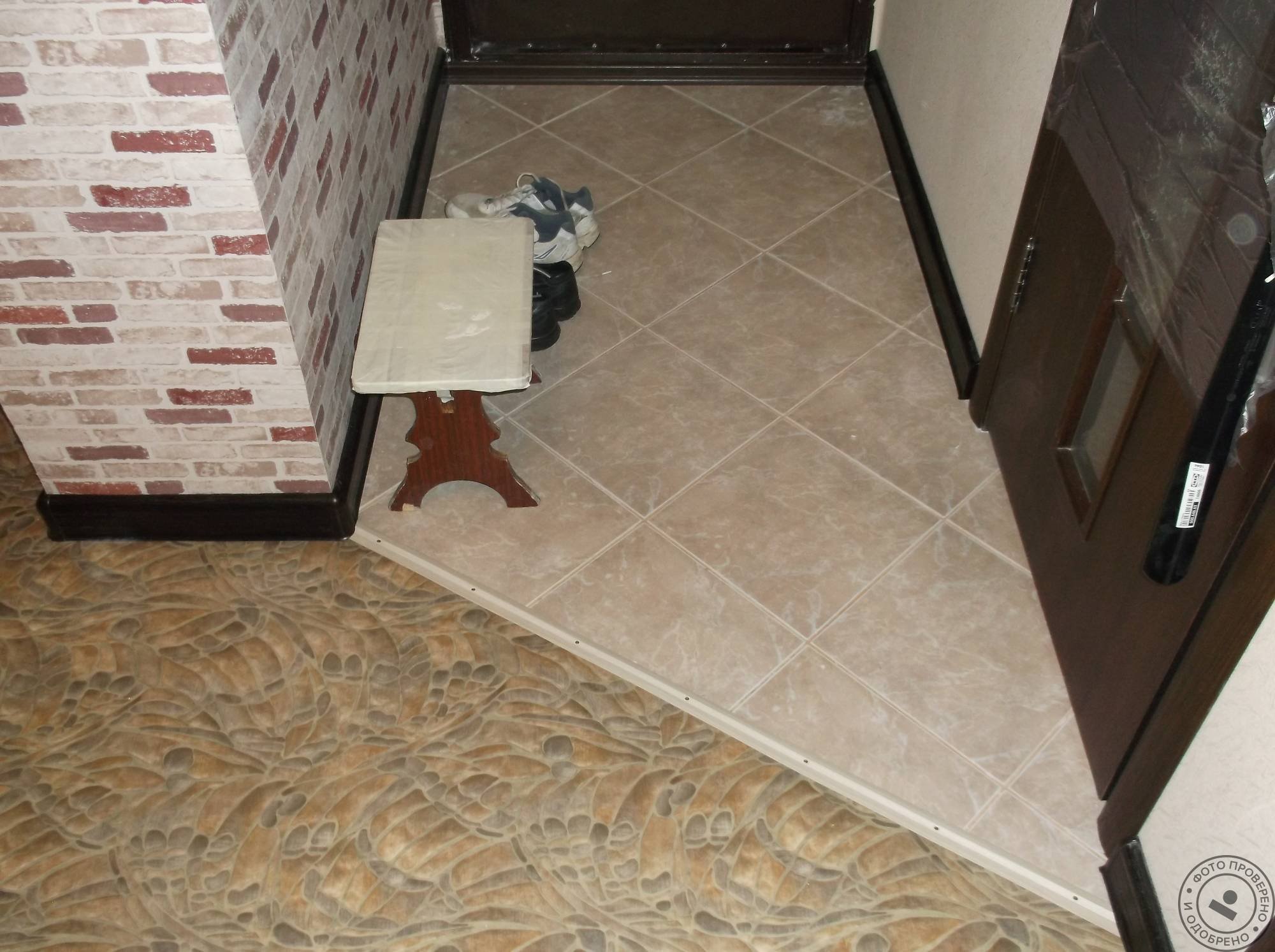 Стык плитки и ламината в прихожей