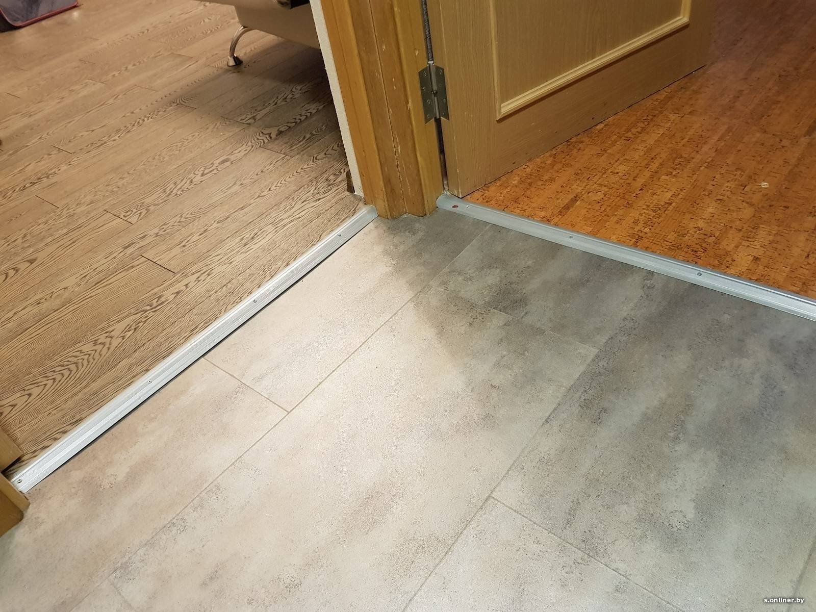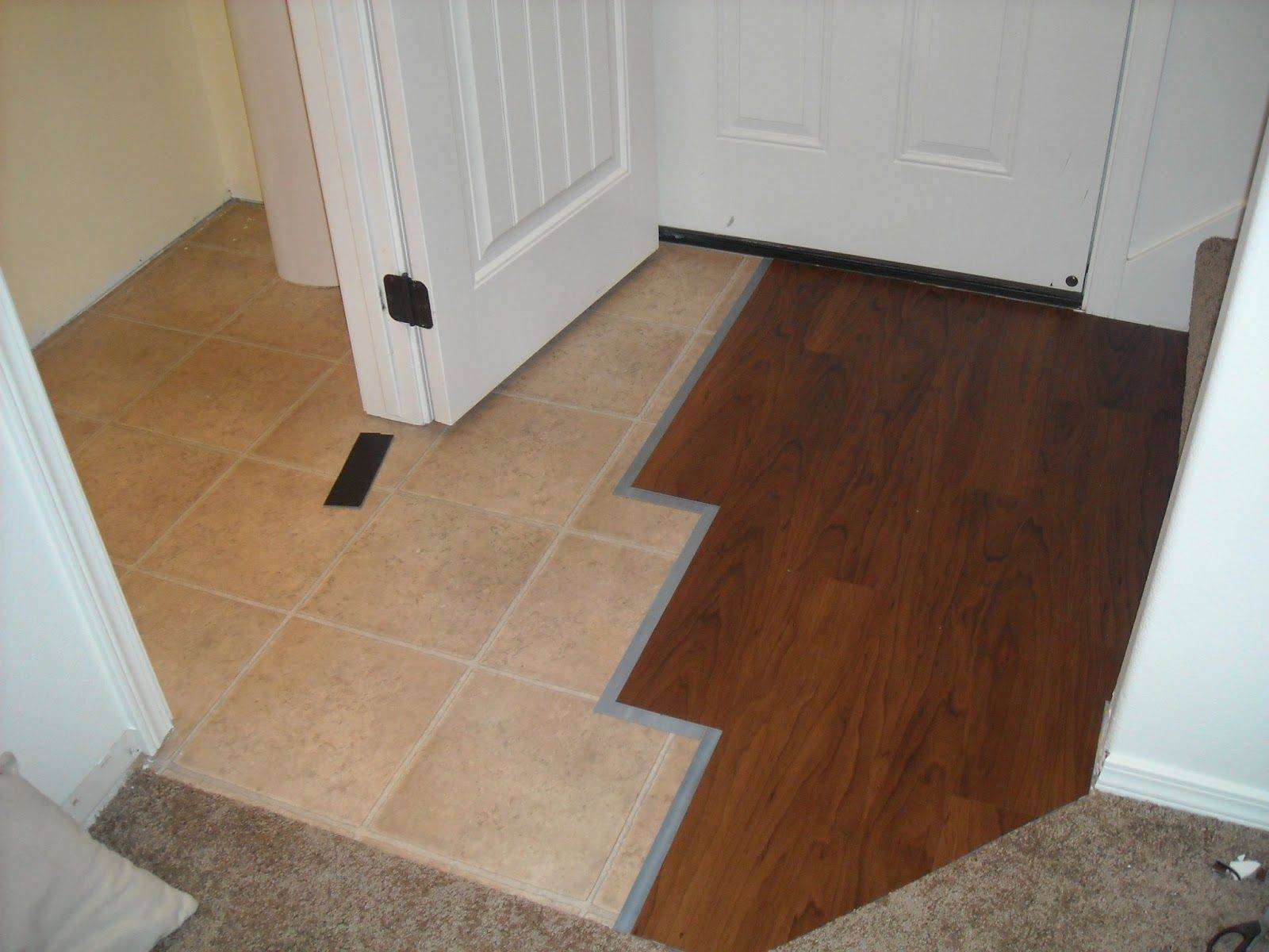 Плитка и ламинат под дверью