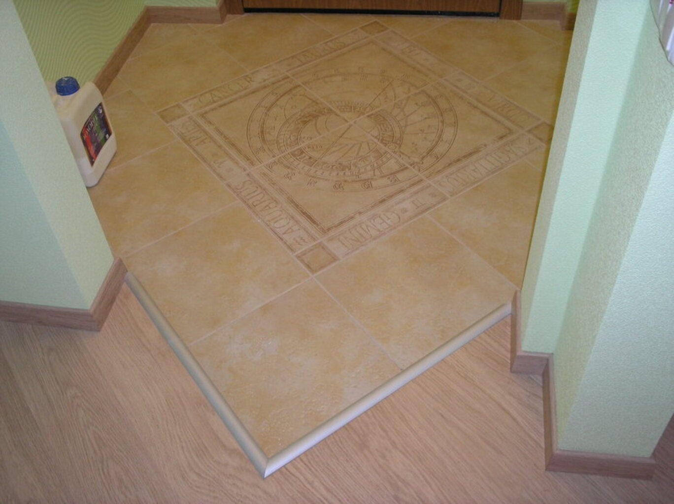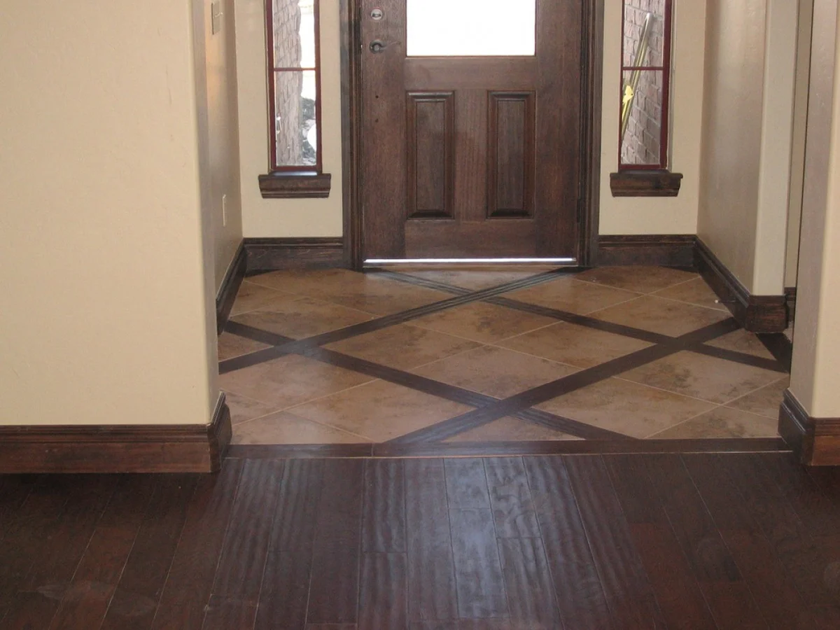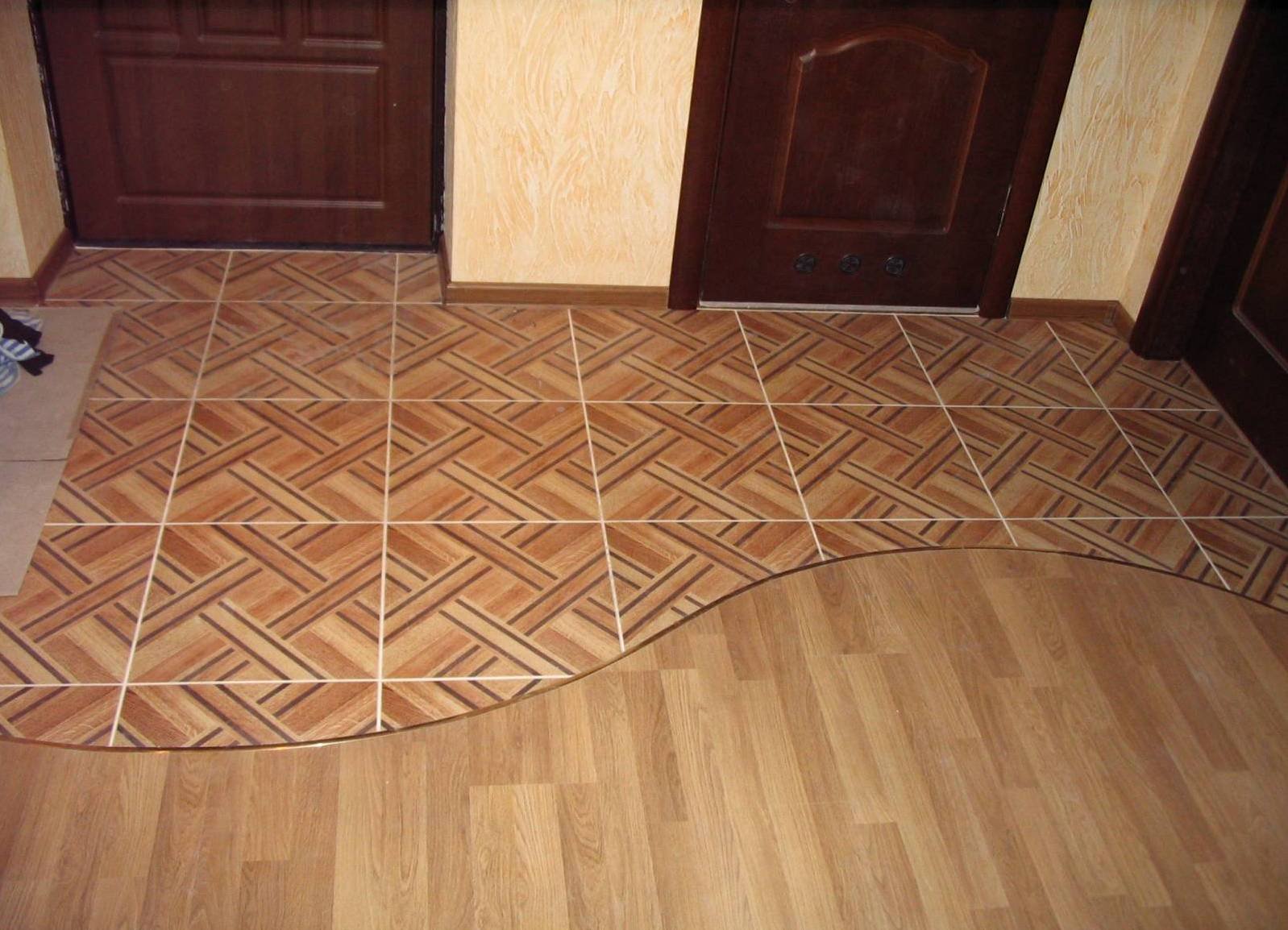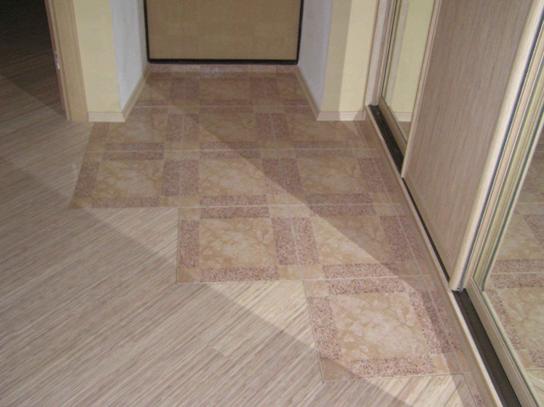 Комбинированный пол в прихожей плитка и ламинат