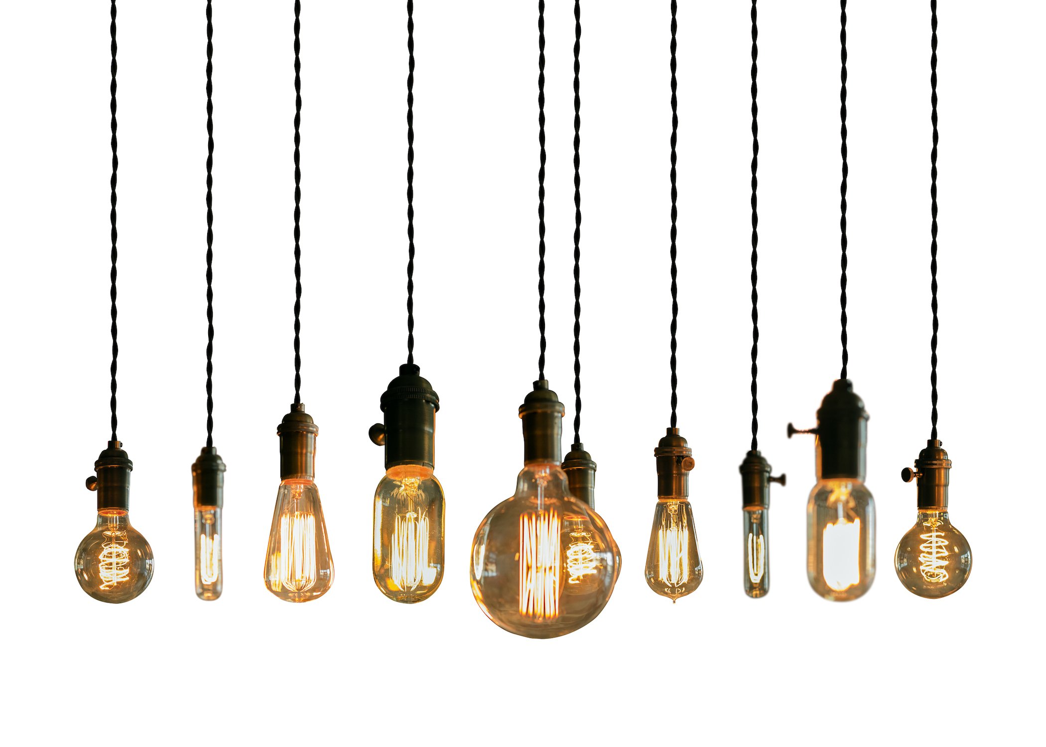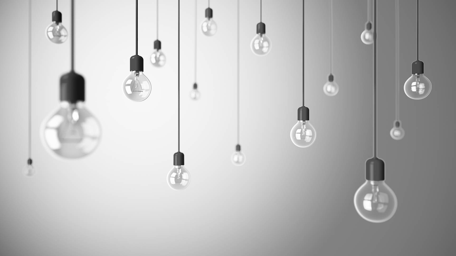 Висящие лампочки на белом фоне