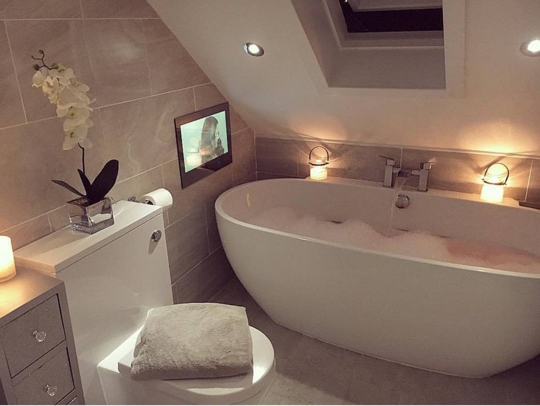 Отдельностоящая ванна в интерьере