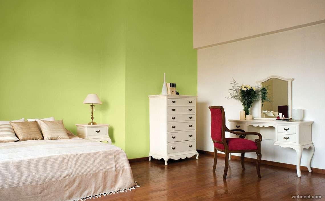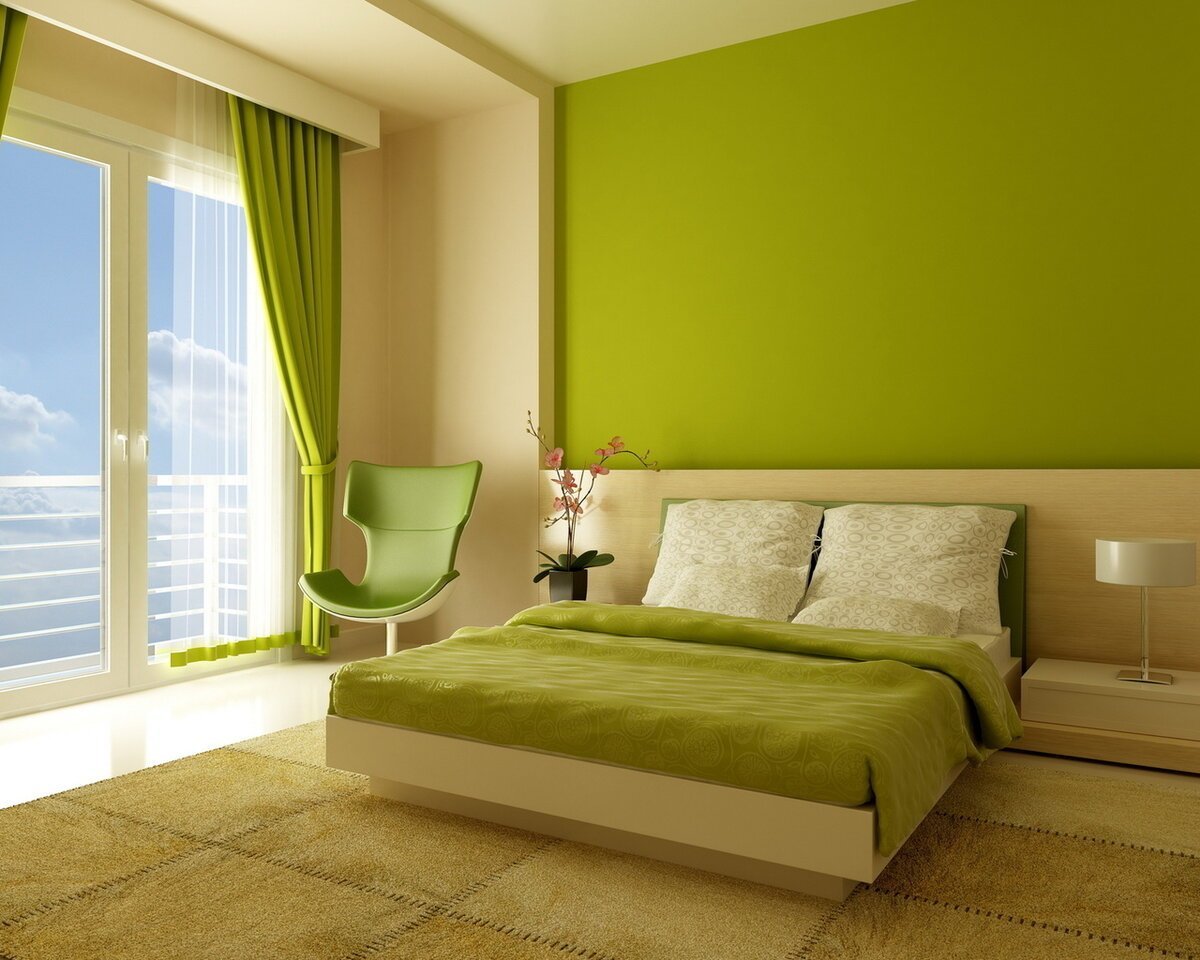 Салатовые стены в спальне