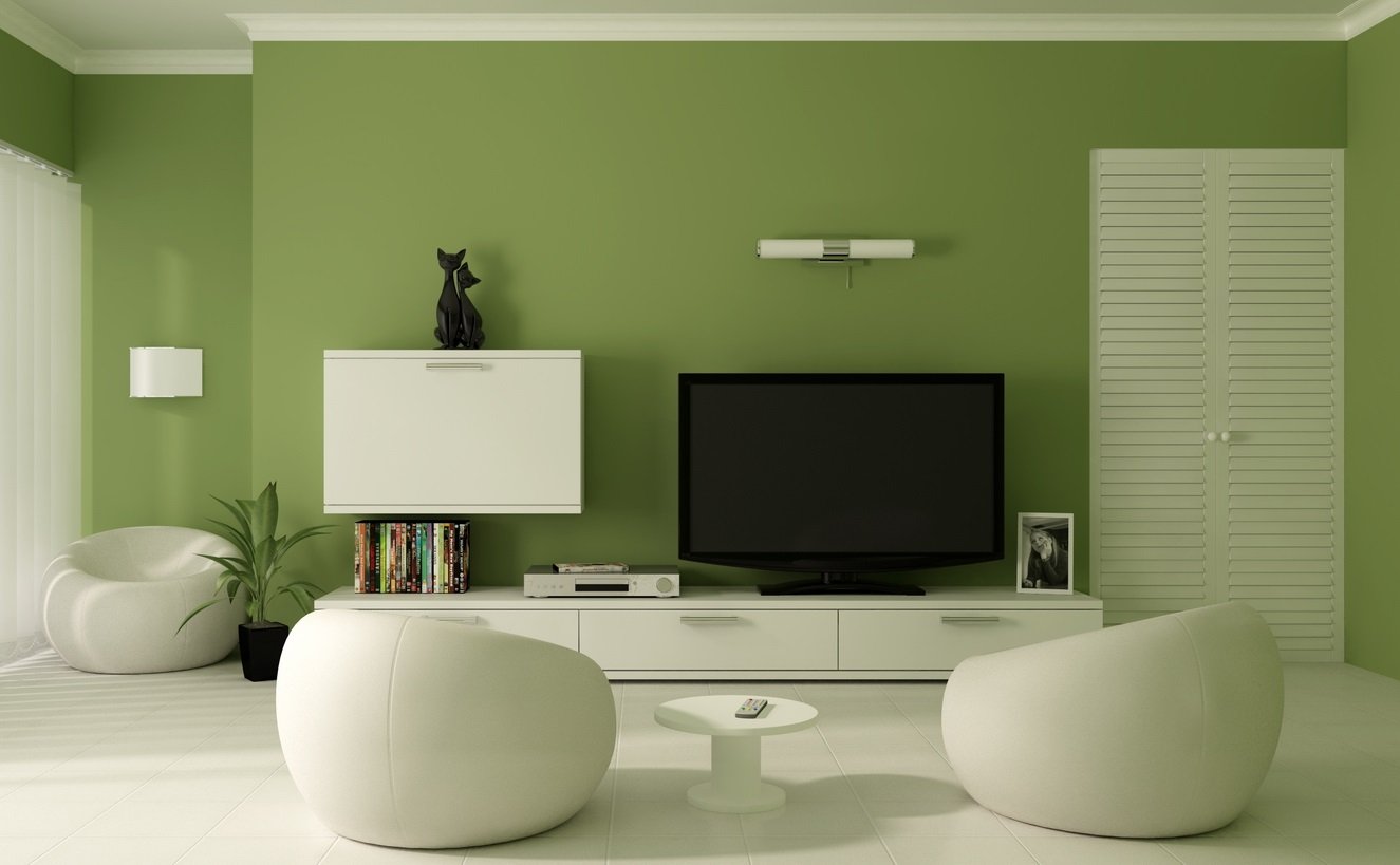 Зеленые стены в гостиной