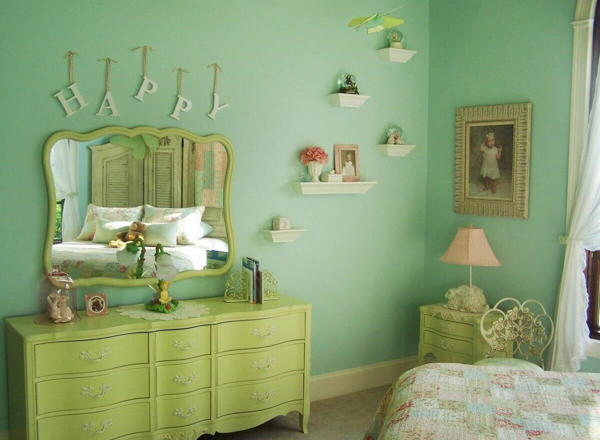 Комната с салатовыми стенами