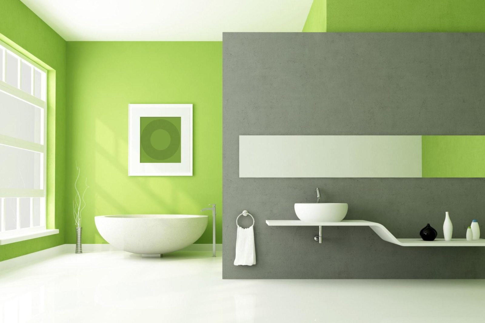 Зеленый цвет в интерьере ванной комнаты