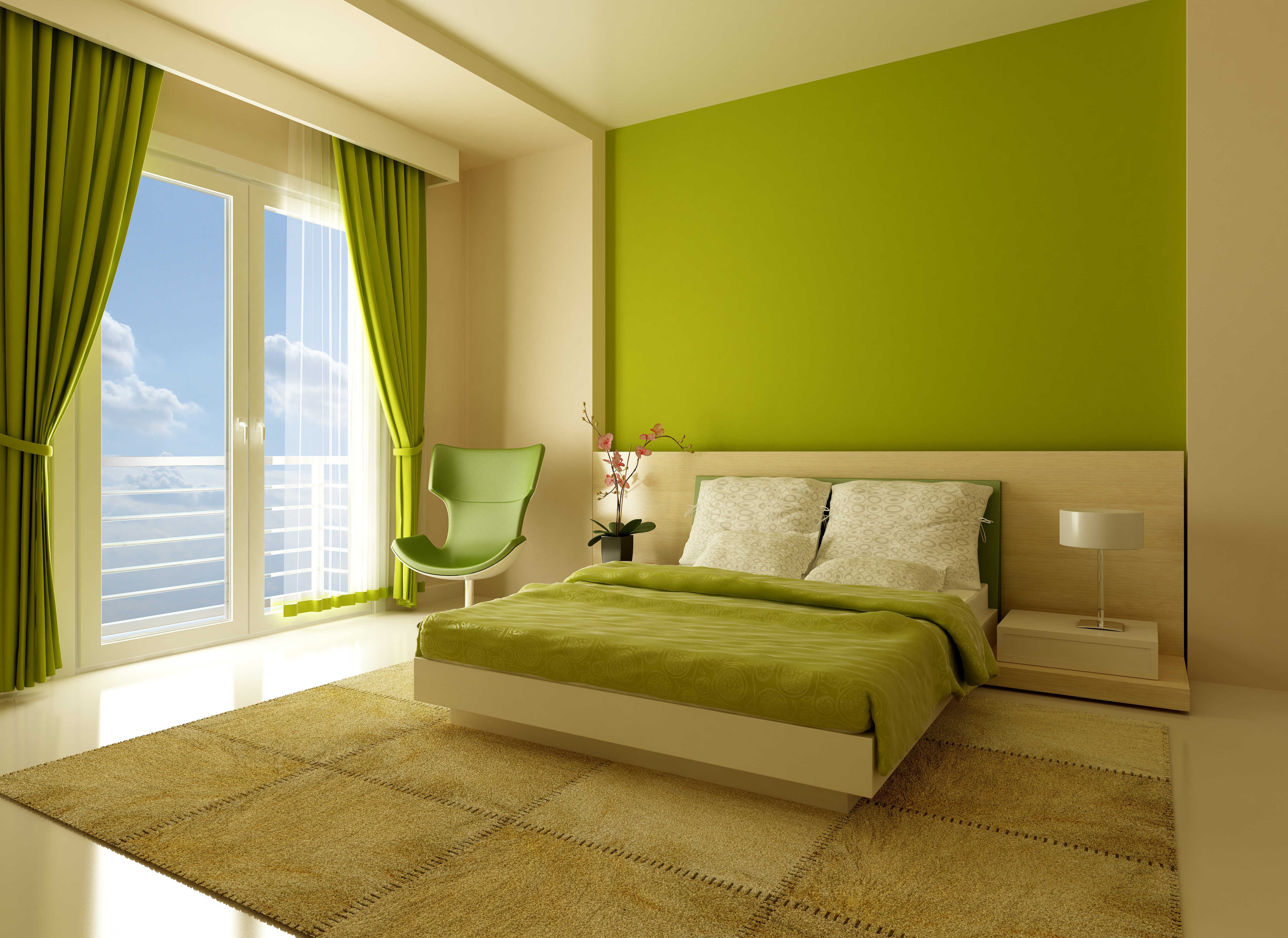 Зеленые стены в спальне