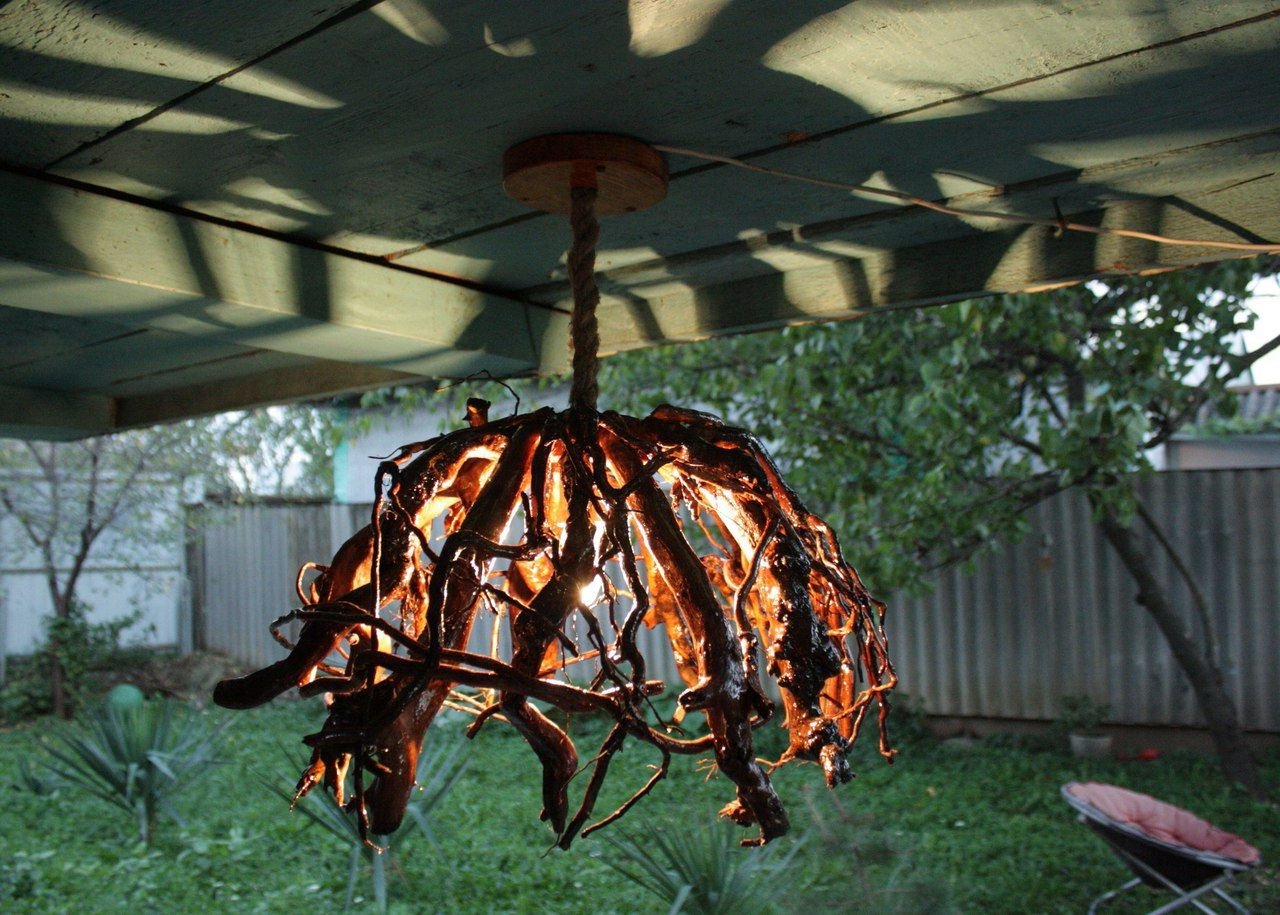 Люстра для уличной беседки своими руками из дерева из коряги