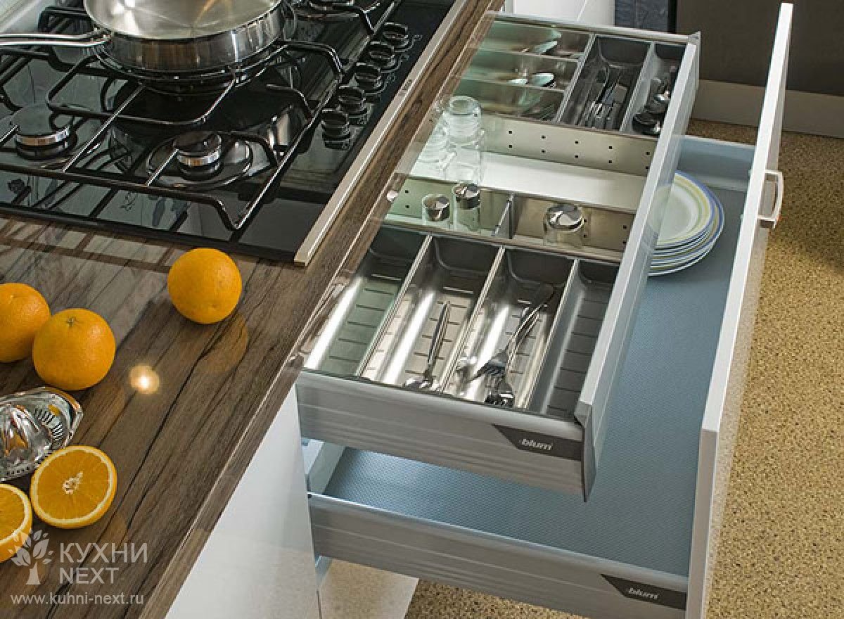 Скрытый выдвижной ящик для столовых приборов Blum