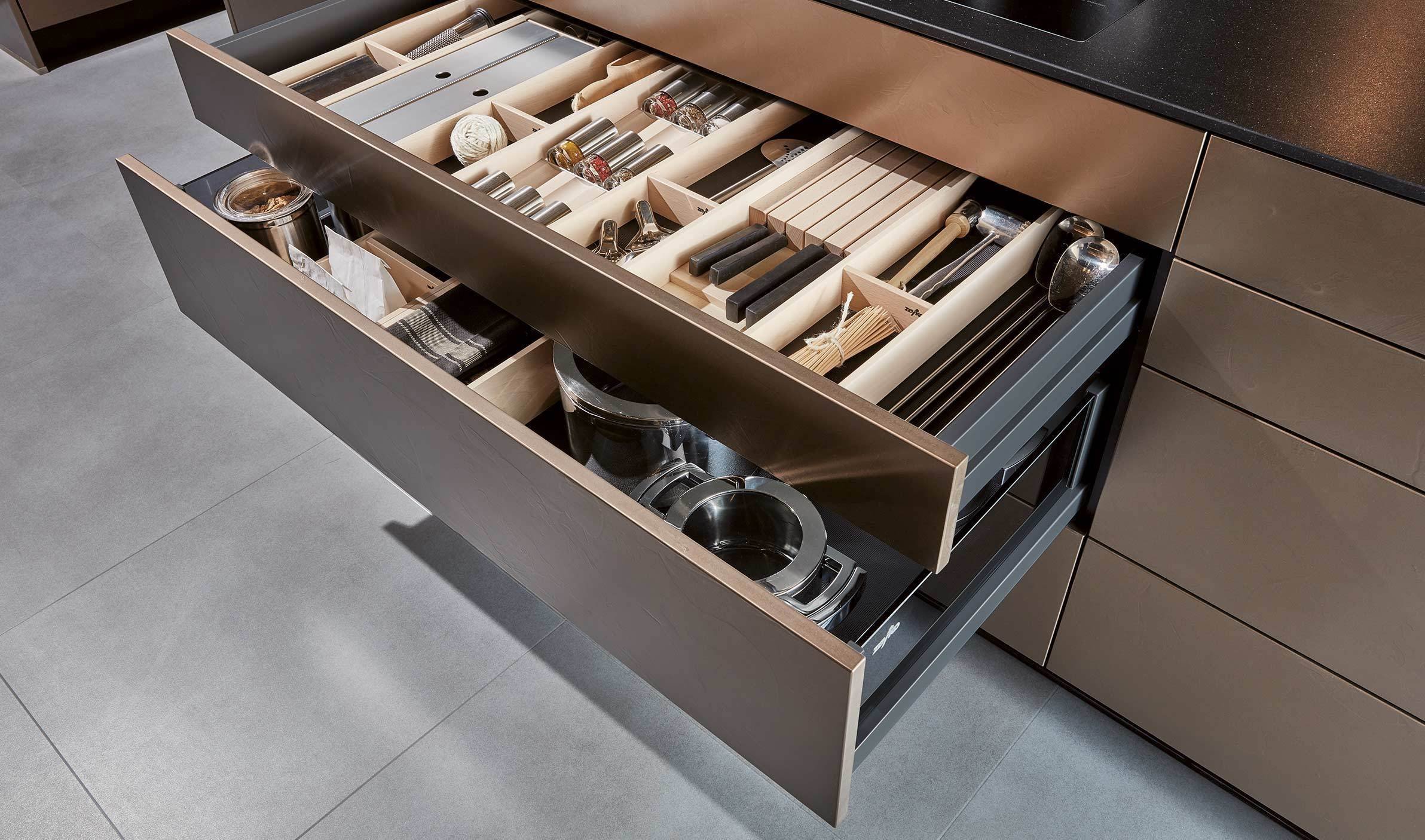 Открытые ящики на кухне