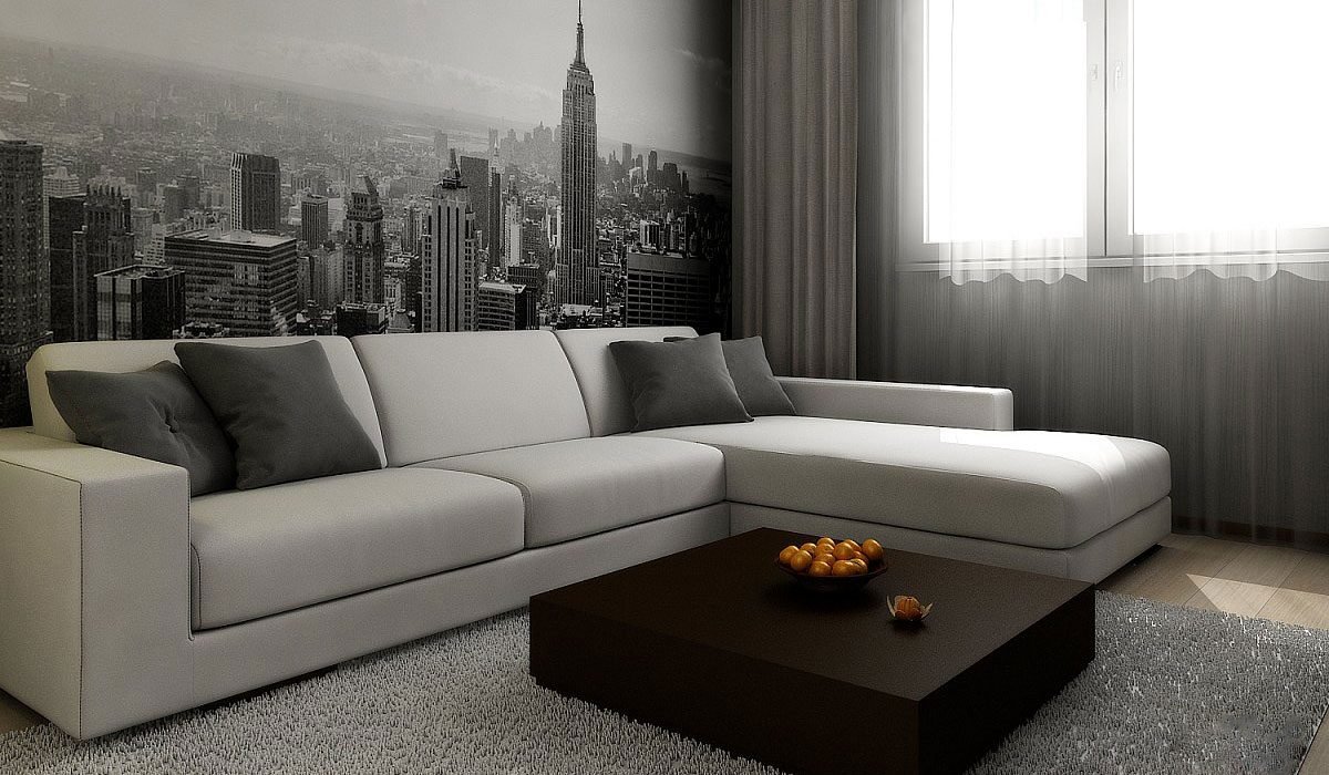 Интерьер однушки с угловым диваном