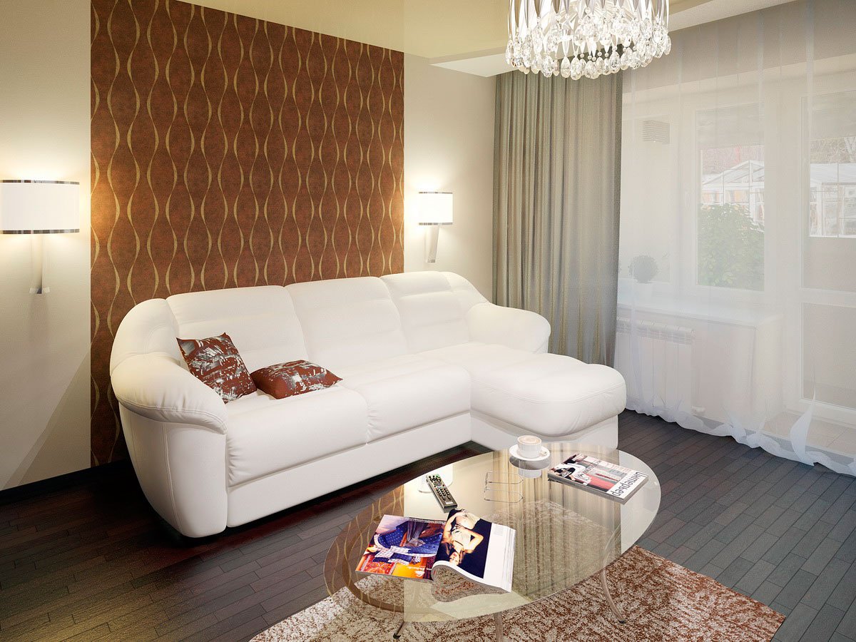 Угловой диван в интерьере гостиной 20 кв м
