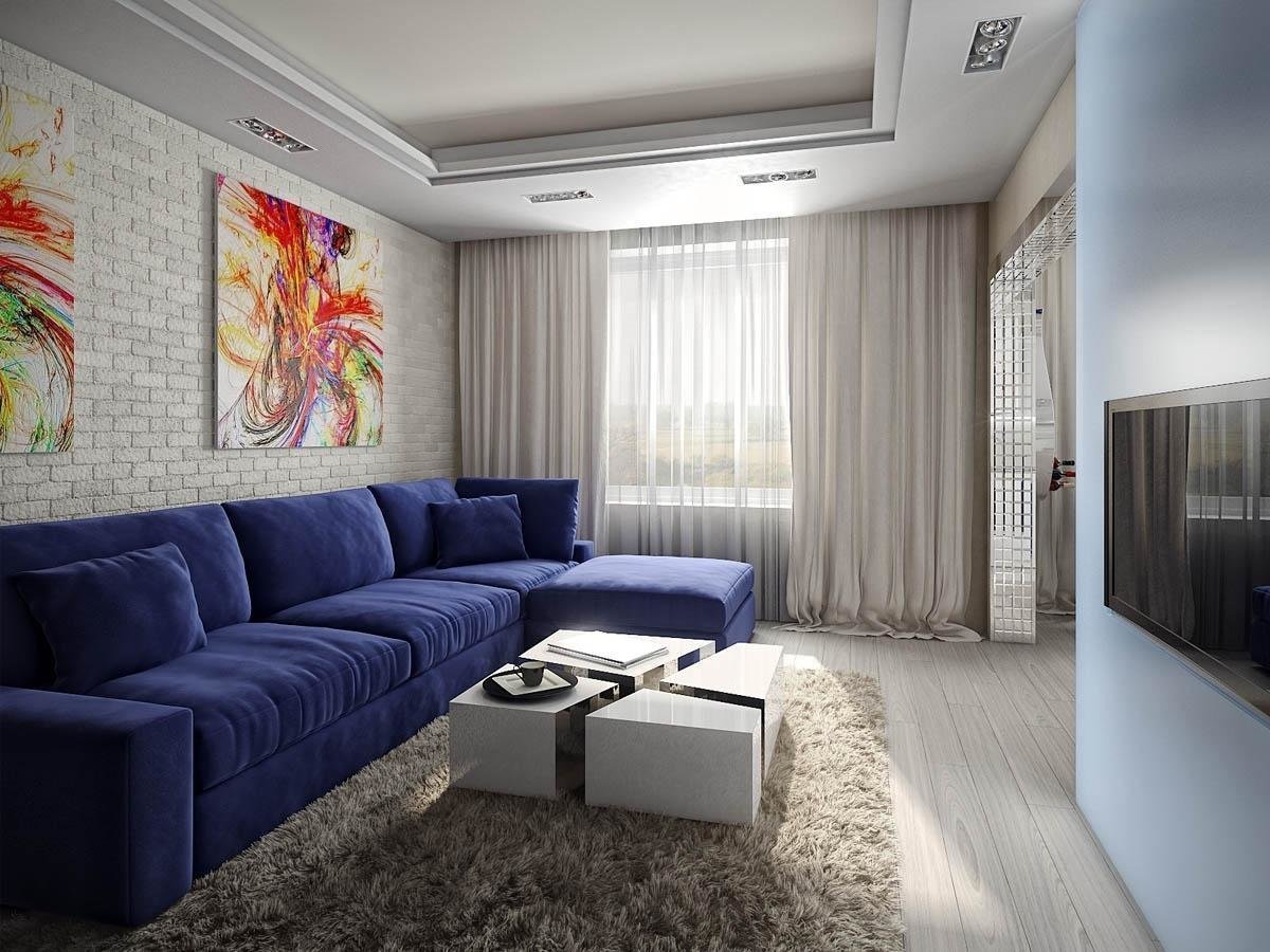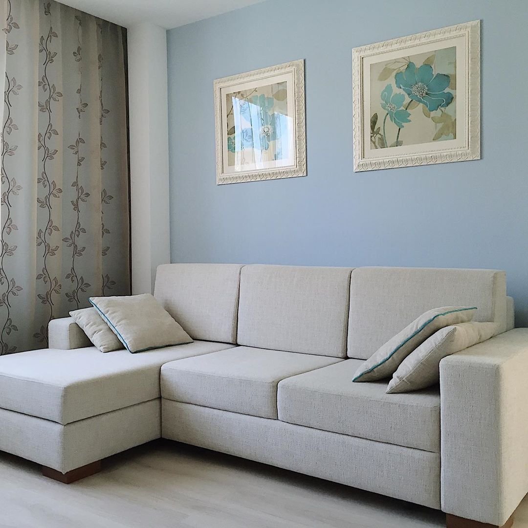 Голубой диван в интерьере