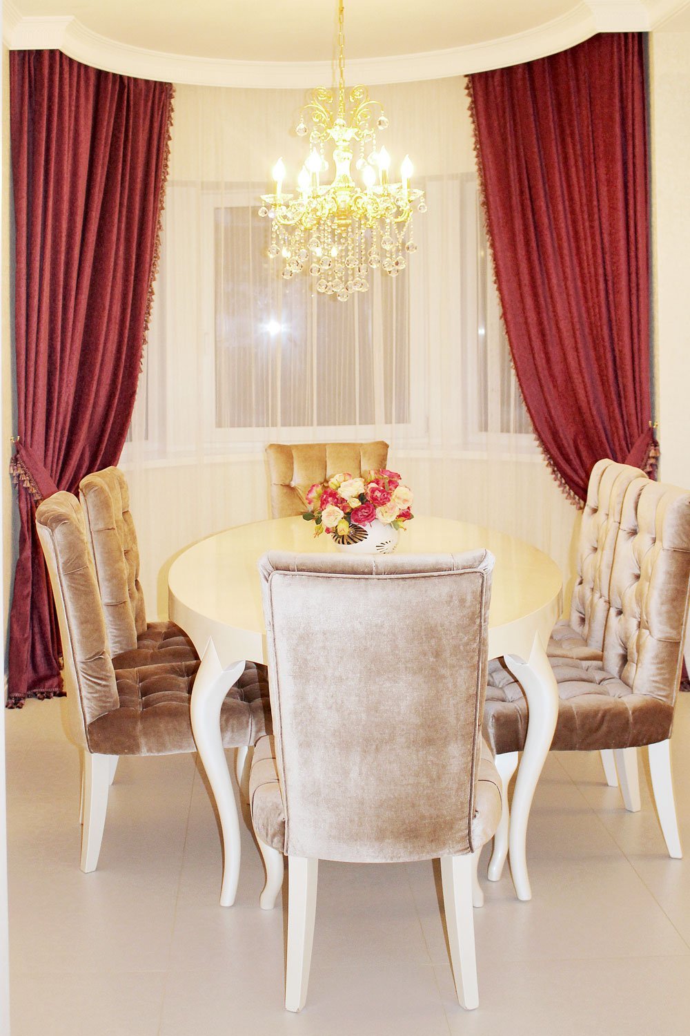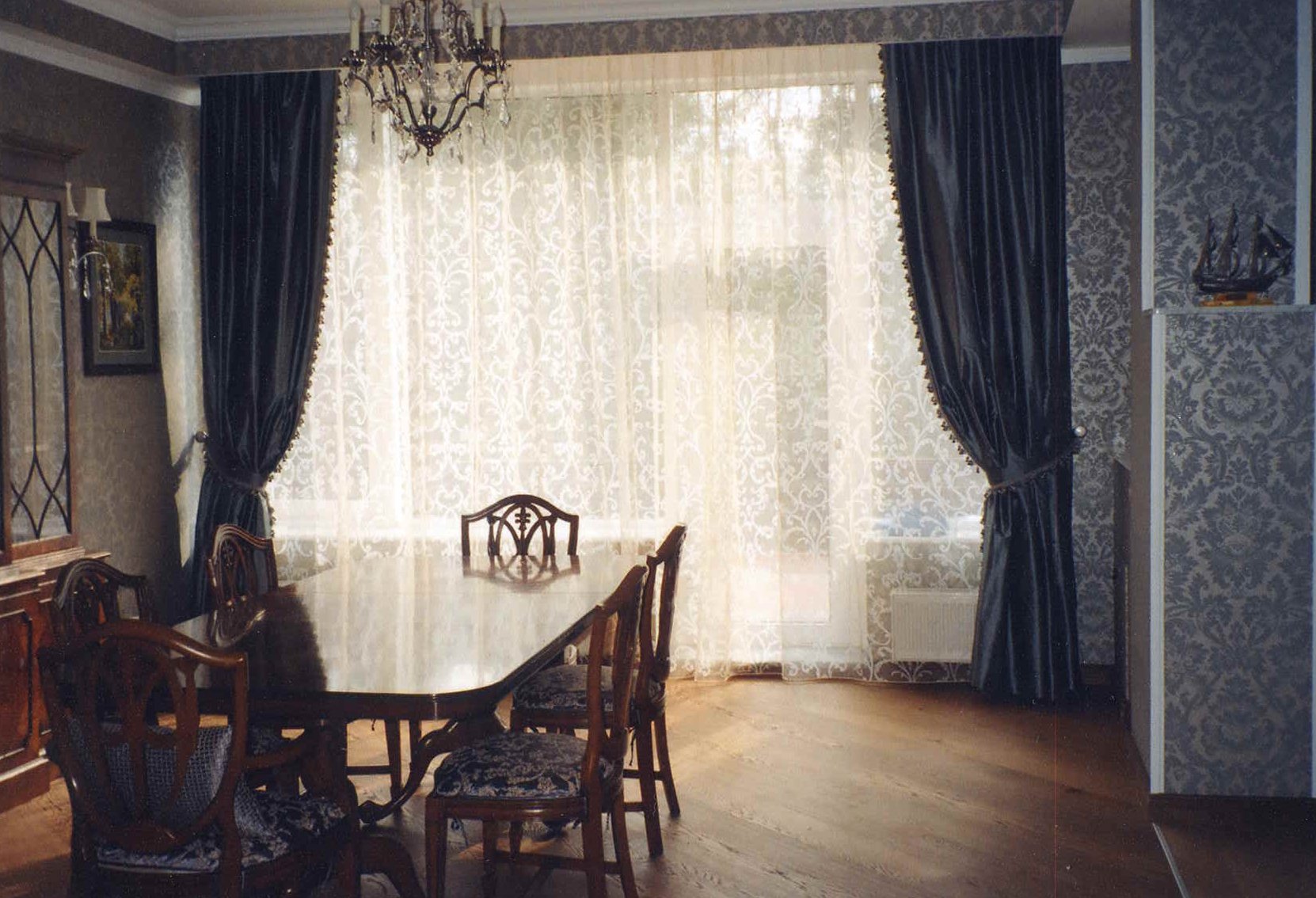 Классическая кухня и шторы из бархата