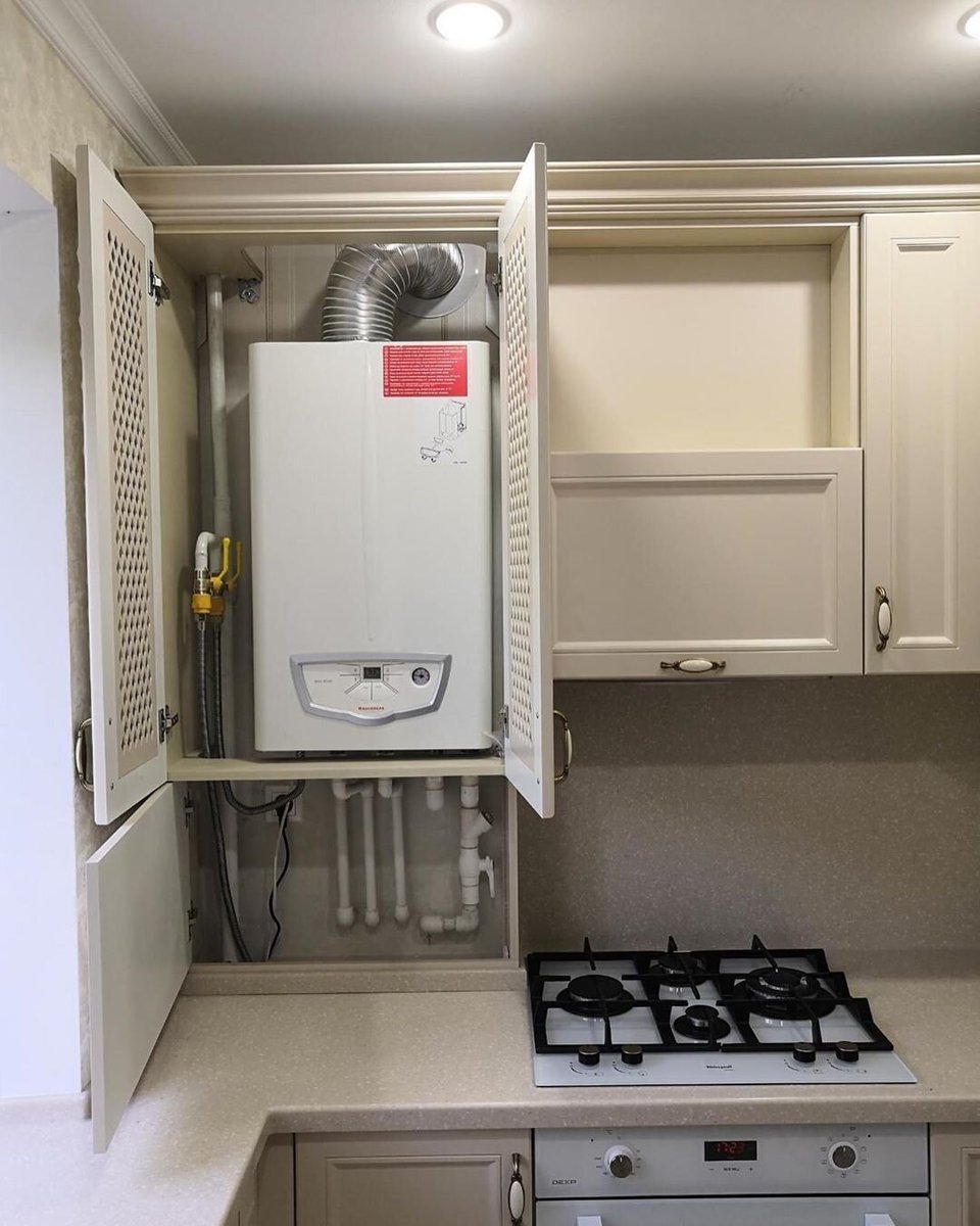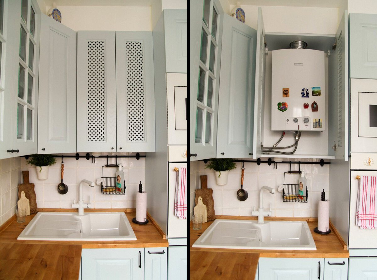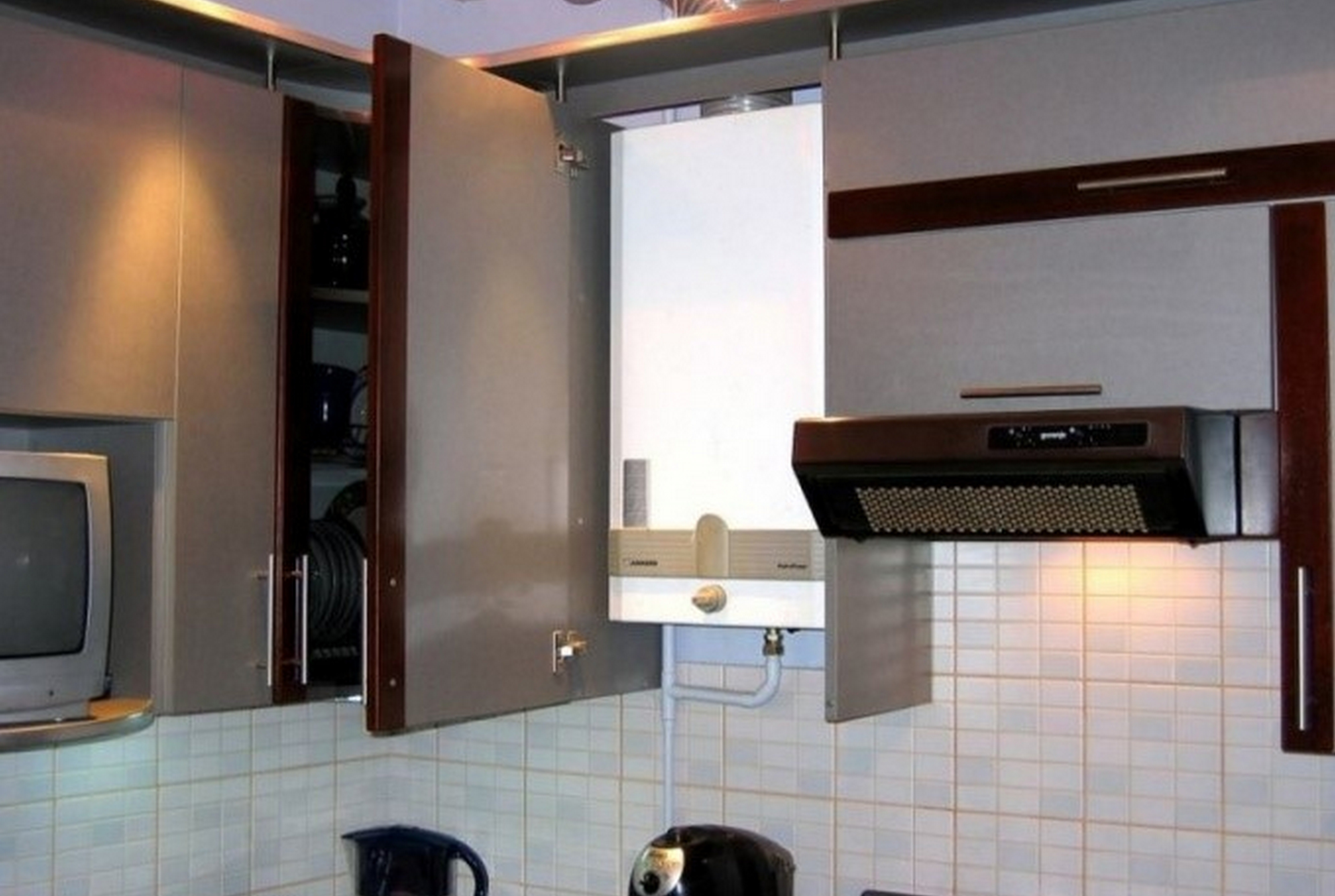 Интерьер кухни 5м.кв с газовой колонкой155на2м