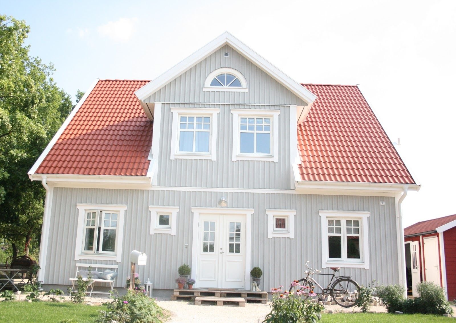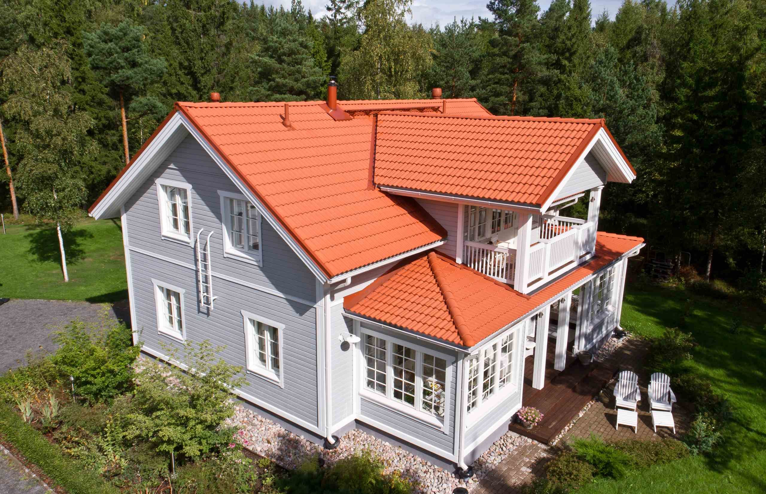 Серый дом с красной крышей