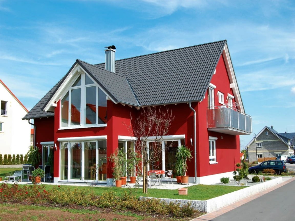 Фасад дома с красной крышей