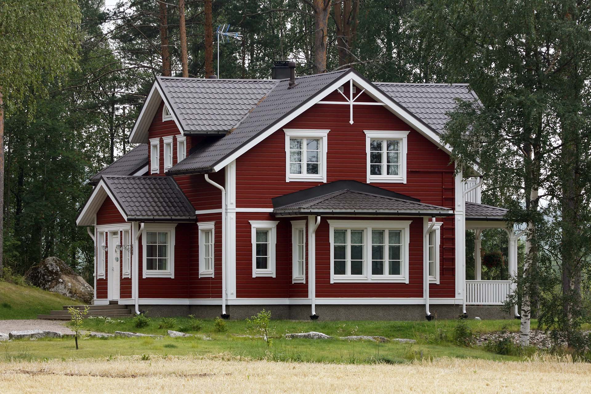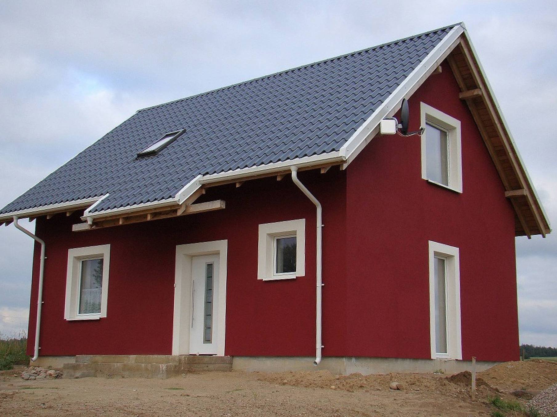 Красный дом с серой крышей