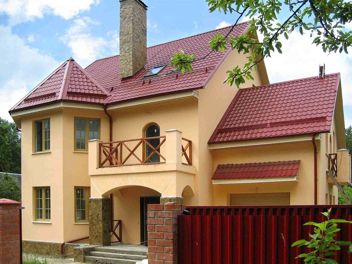 Дом с крышей из металлочерепицы