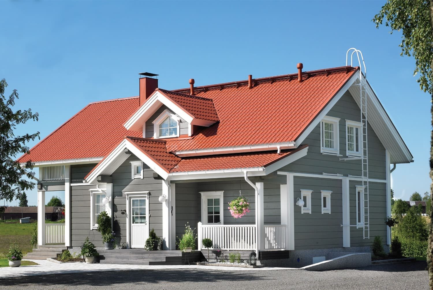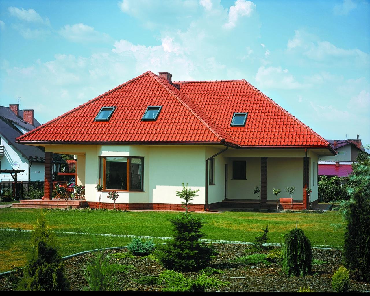 Красная крыша белый фасад