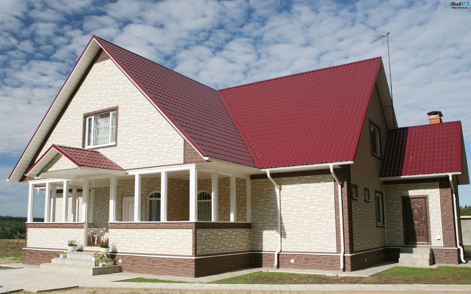 Сочетания цвета фасада дома с черепичной крышей
