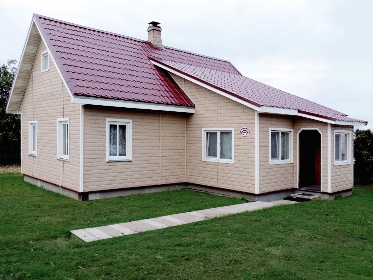 Дом с бордовой крышей
