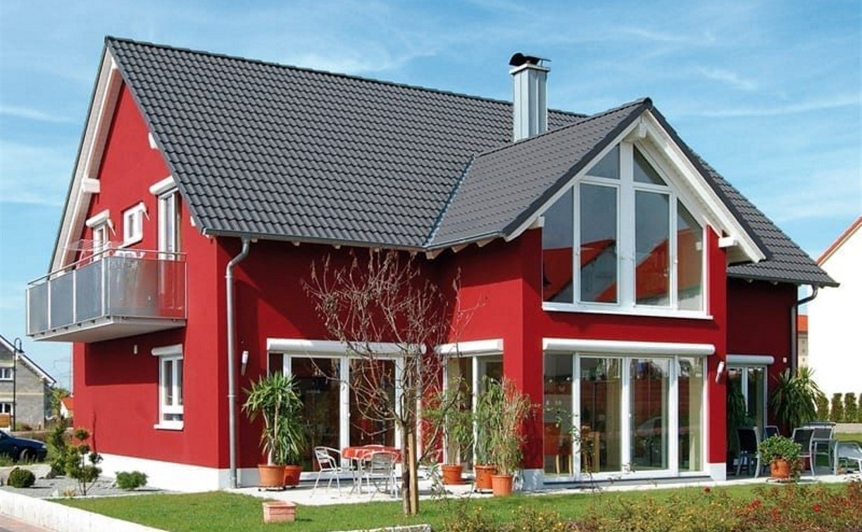 Фасады домов с красной крышей