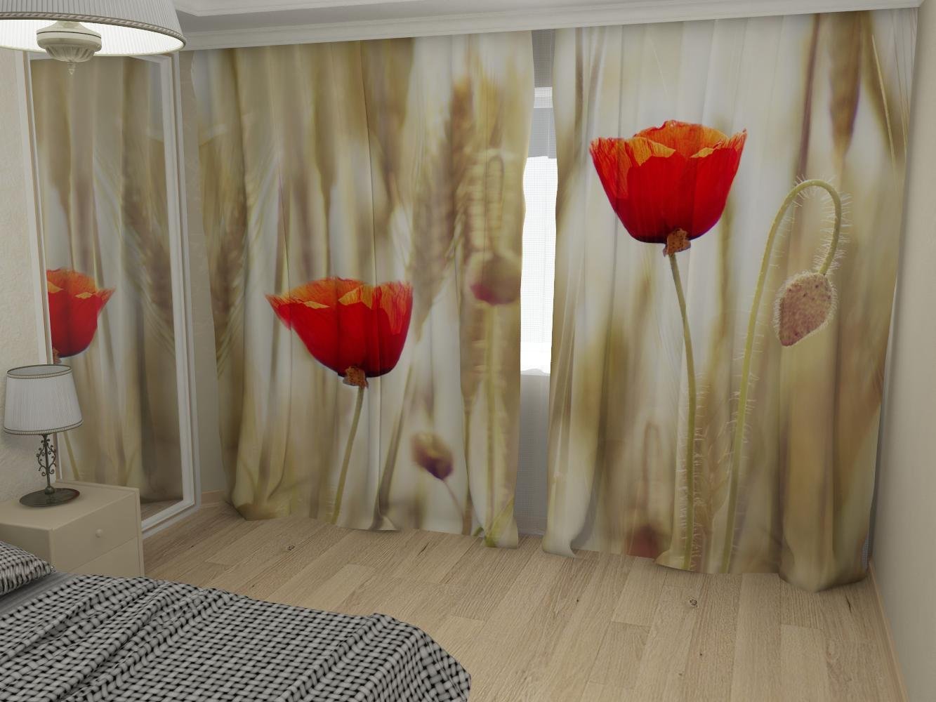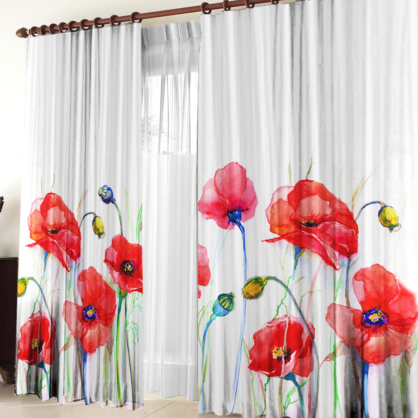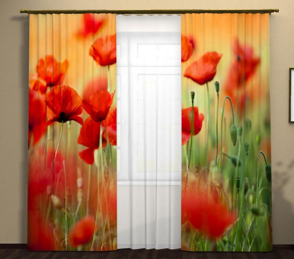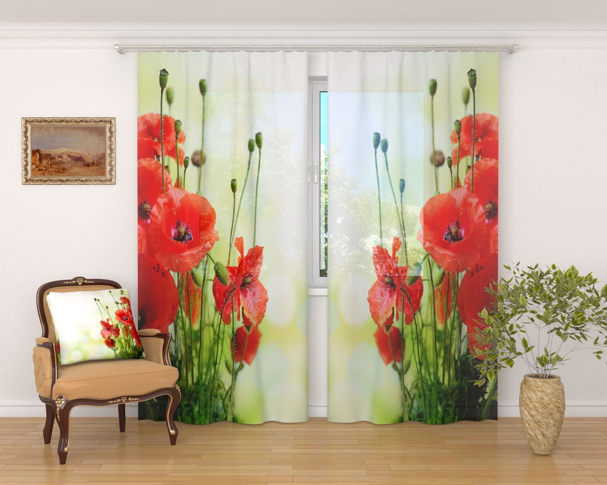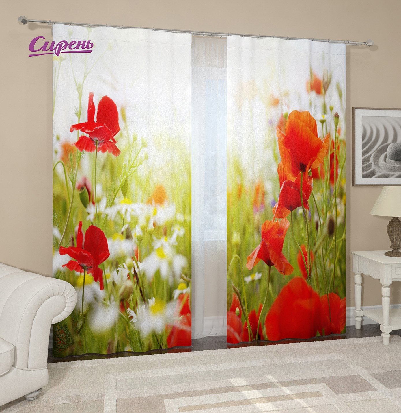 Фотошторы сирень маки на зеленом фоне (03563-ФШ-бл-001 ) на ленте 260 см
