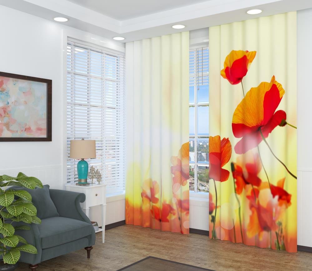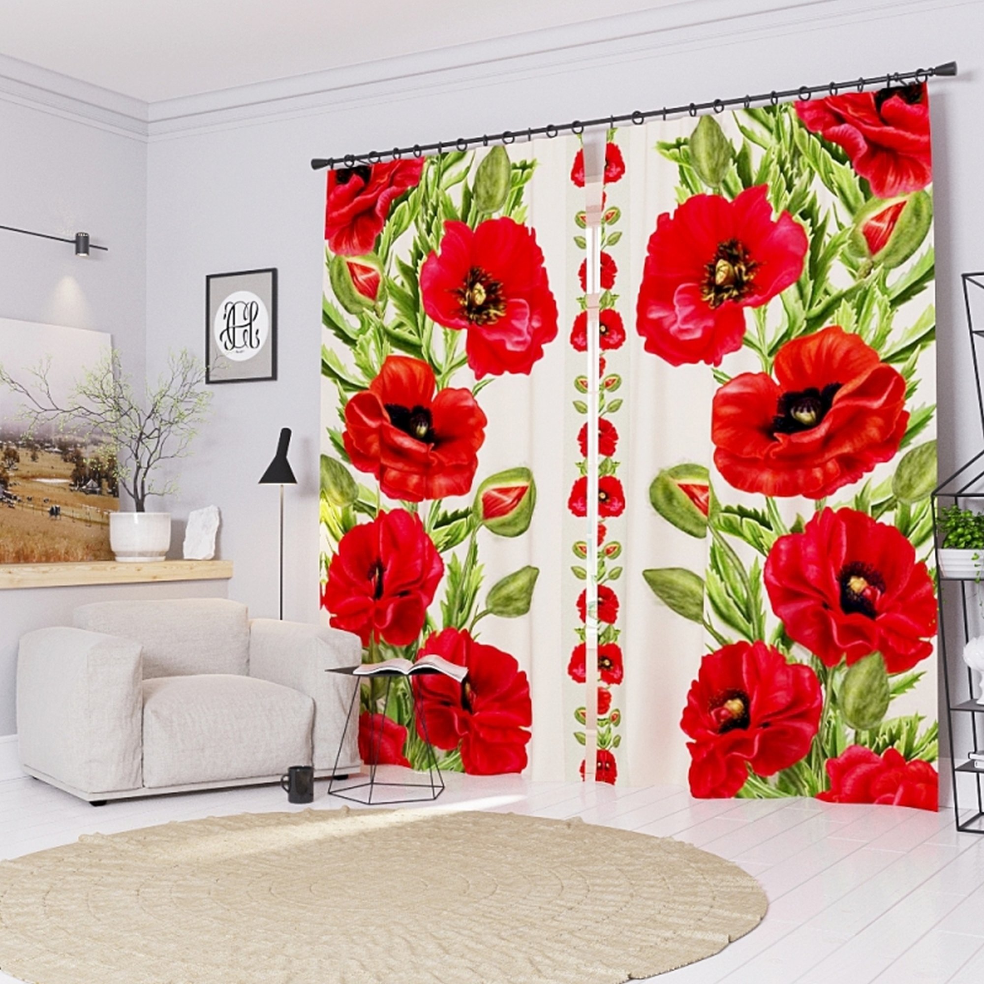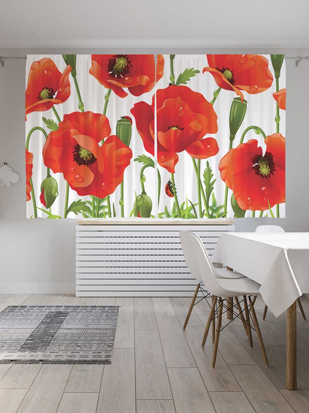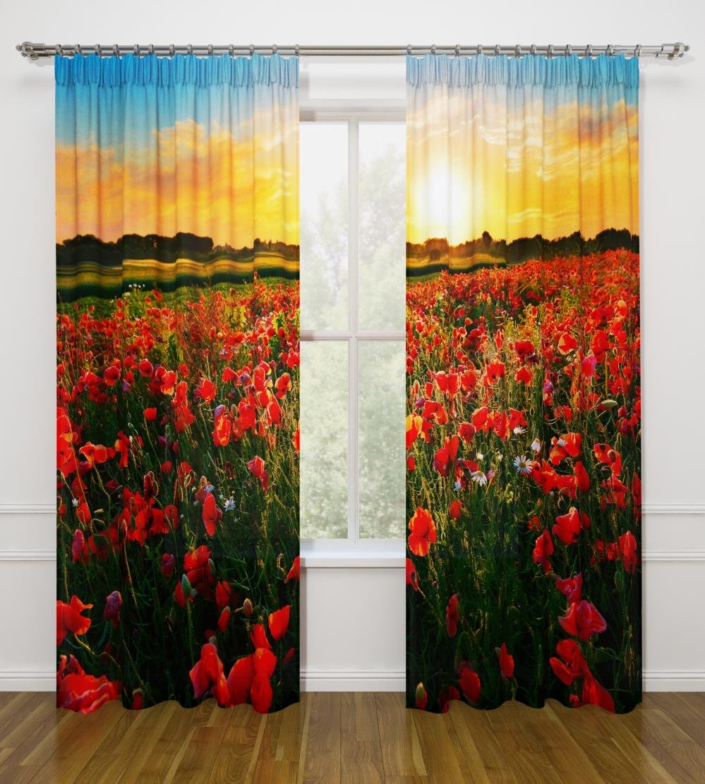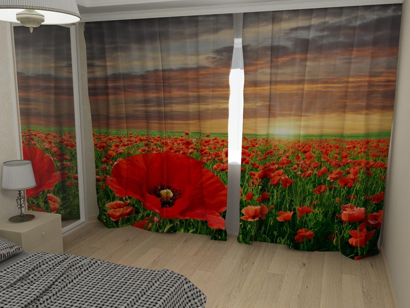 Фотошторы сирень маки на зеленом фоне (03563-ФШ-бл-001 ) на ленте 260 см