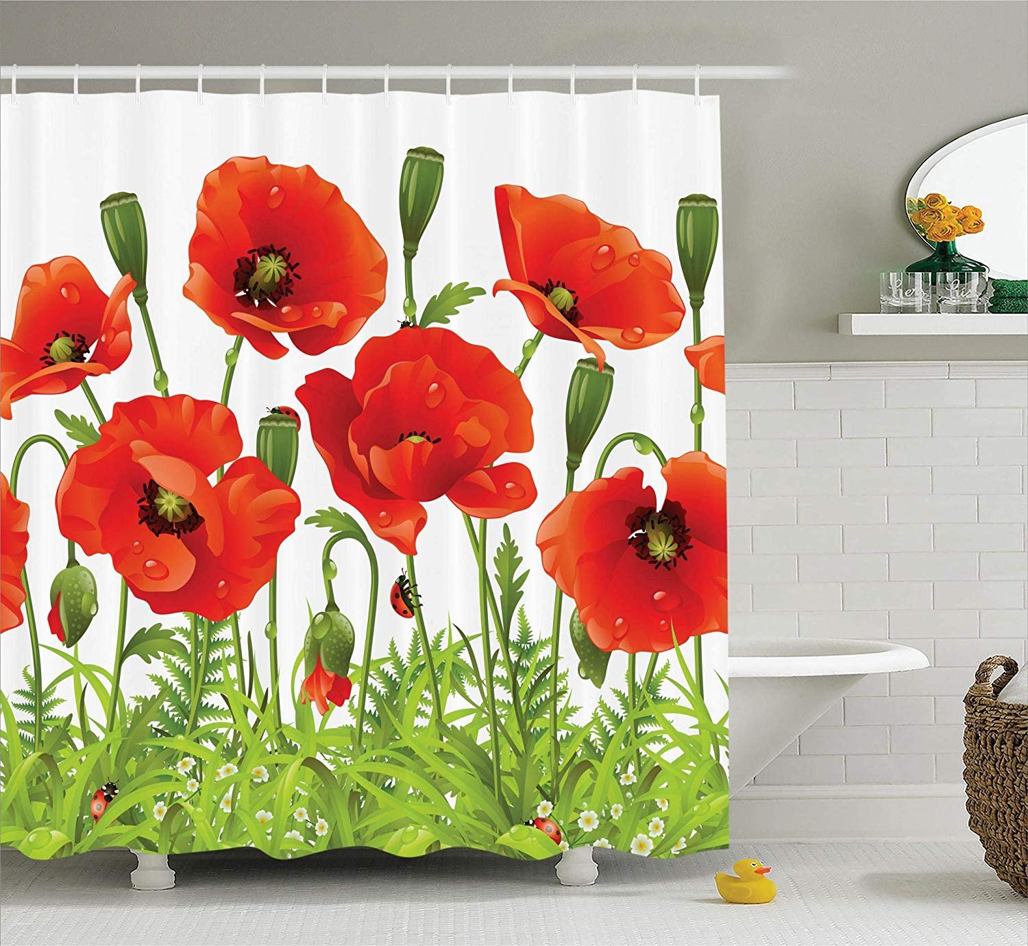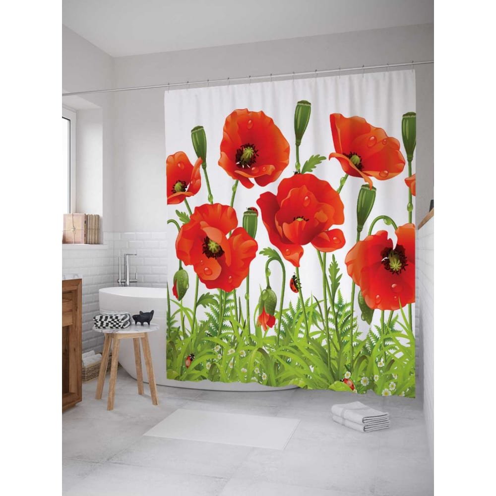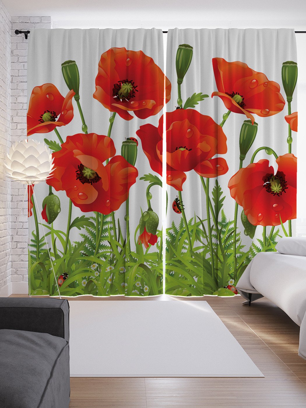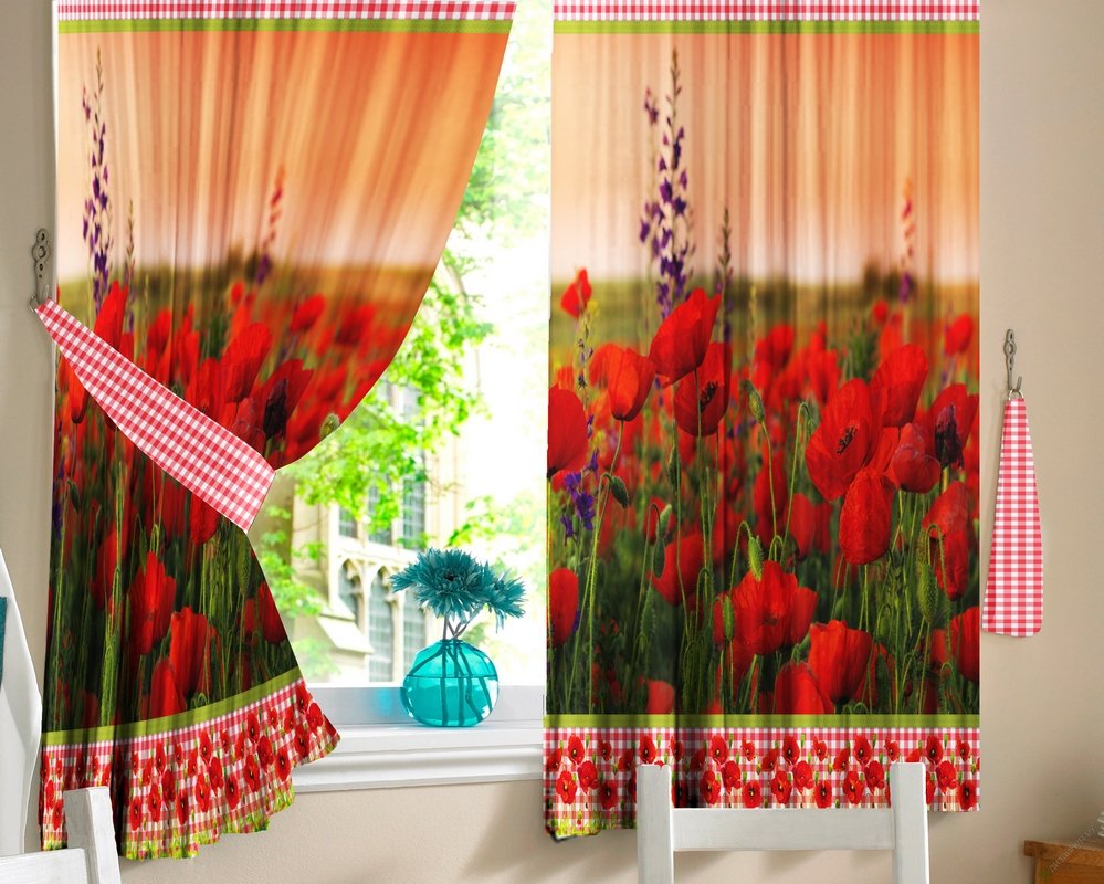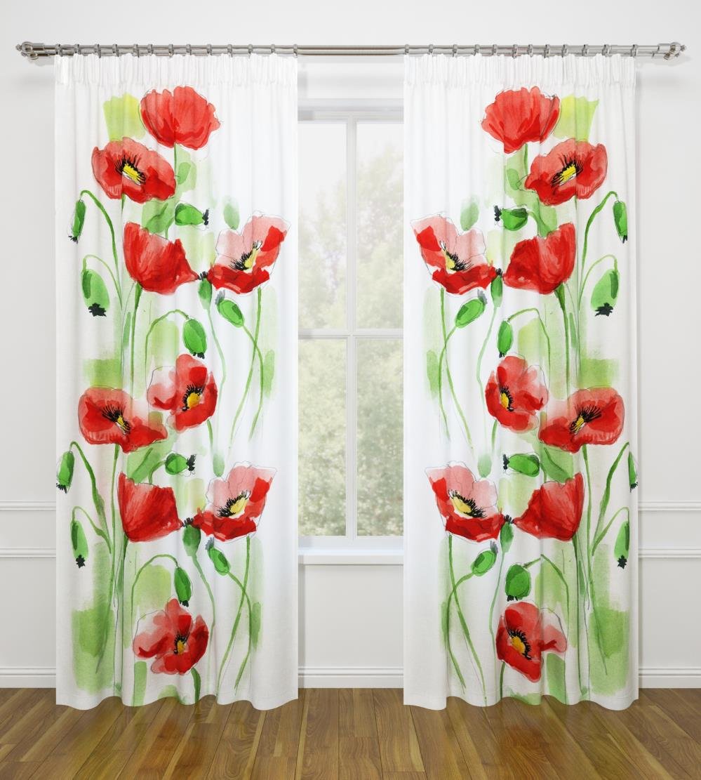 Фотошторы сирень маки на зеленом фоне (03563-ФШ-бл-001 ) на ленте 260 см