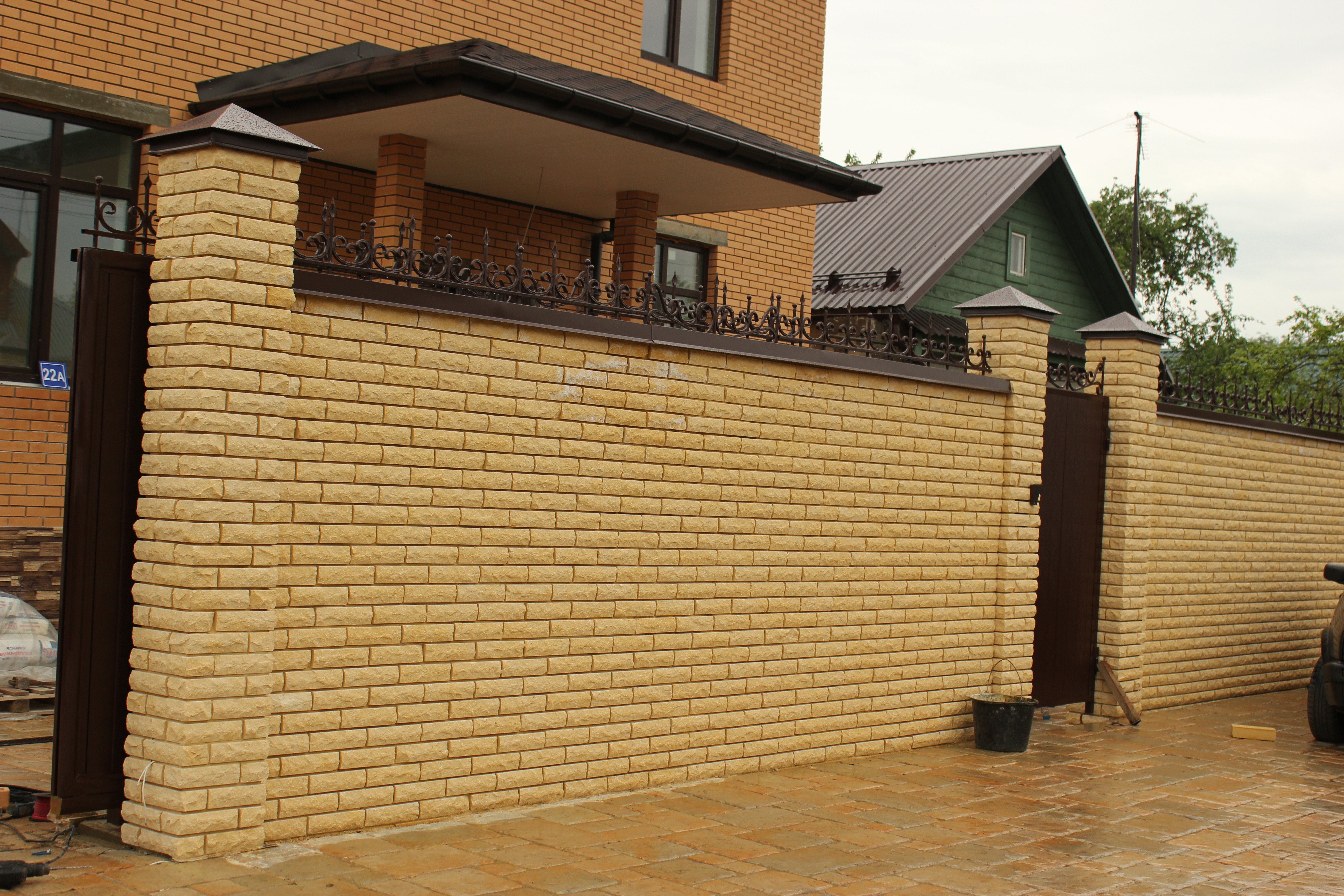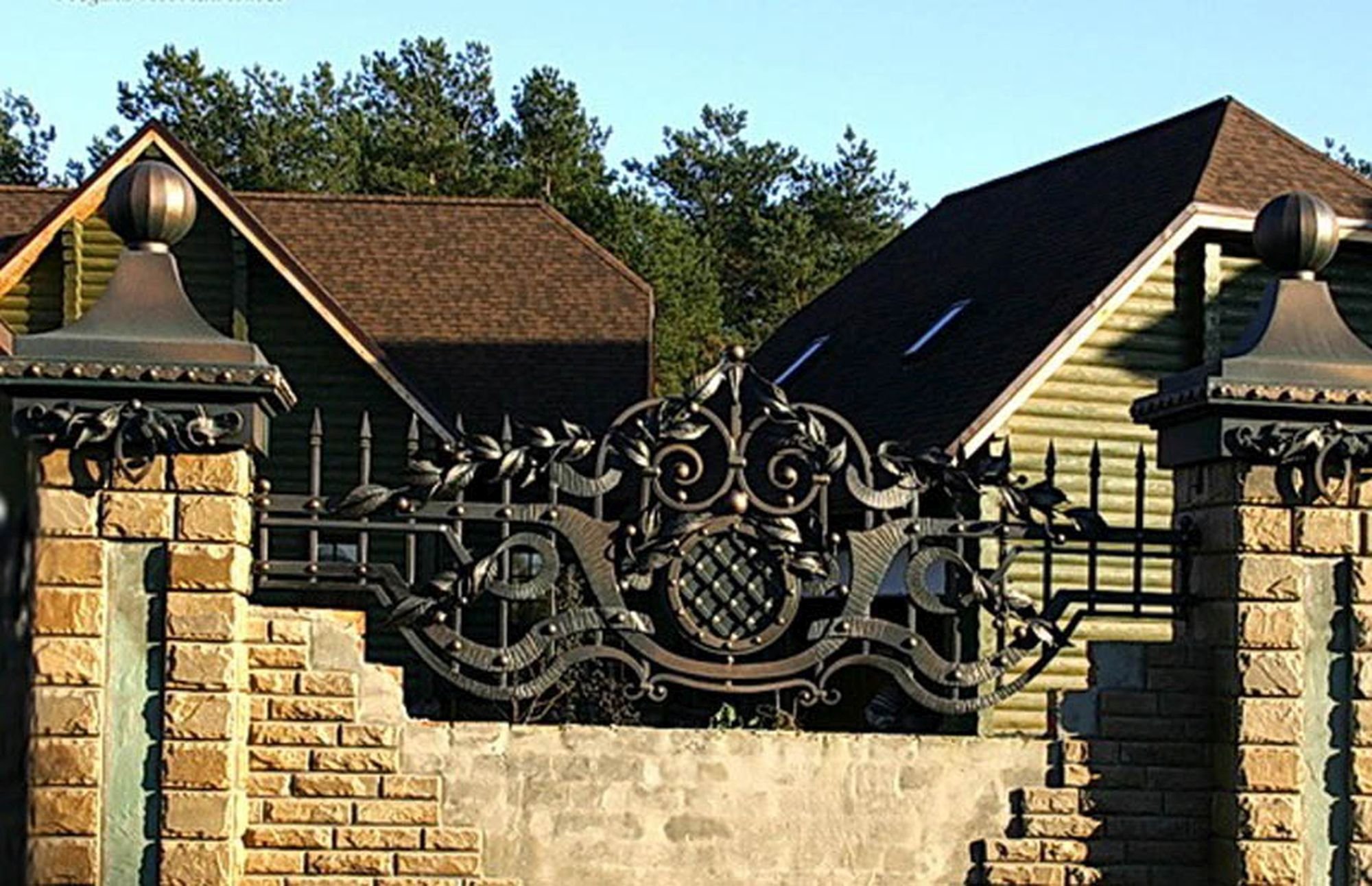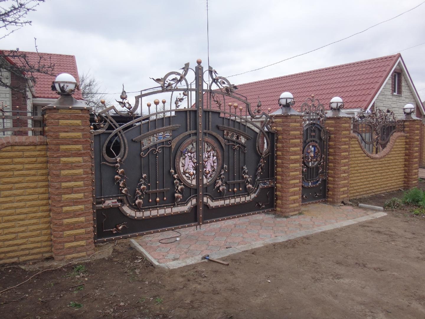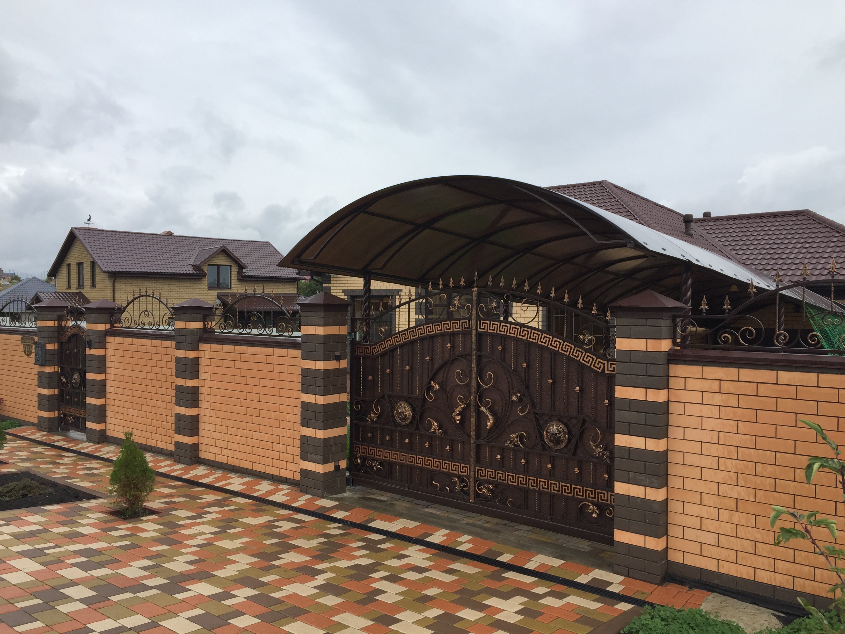 Кирпичные заборы с коваными воротами
