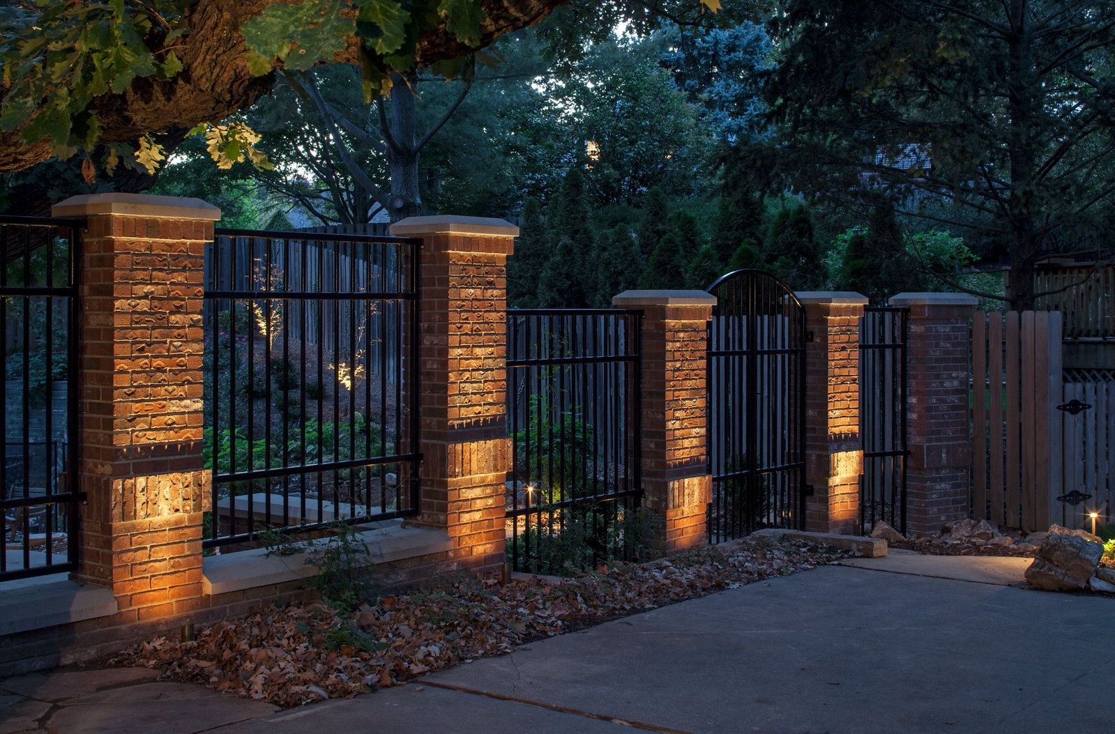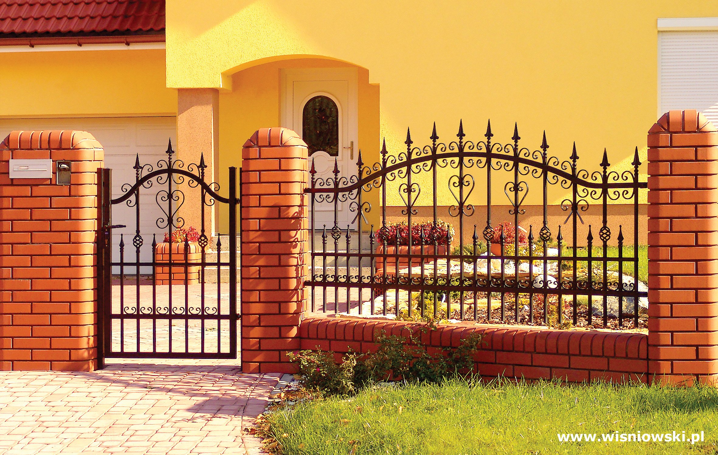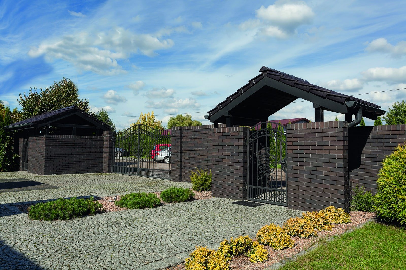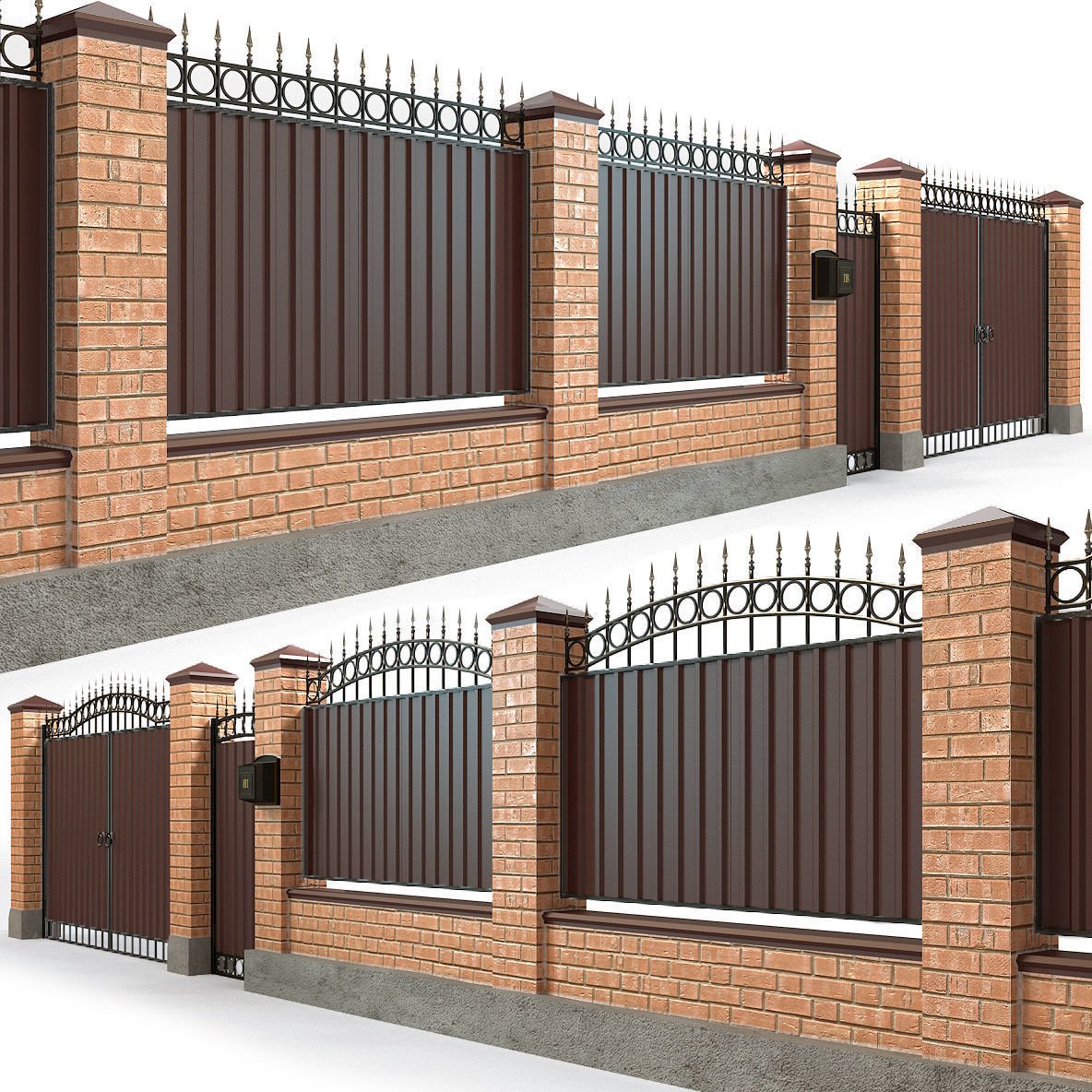 Кирпичные заборы с коваными воротами