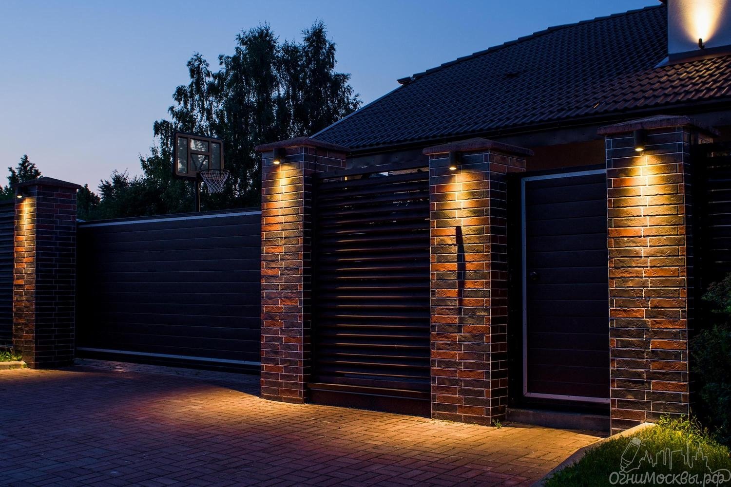 Кирпичный забор с воротами