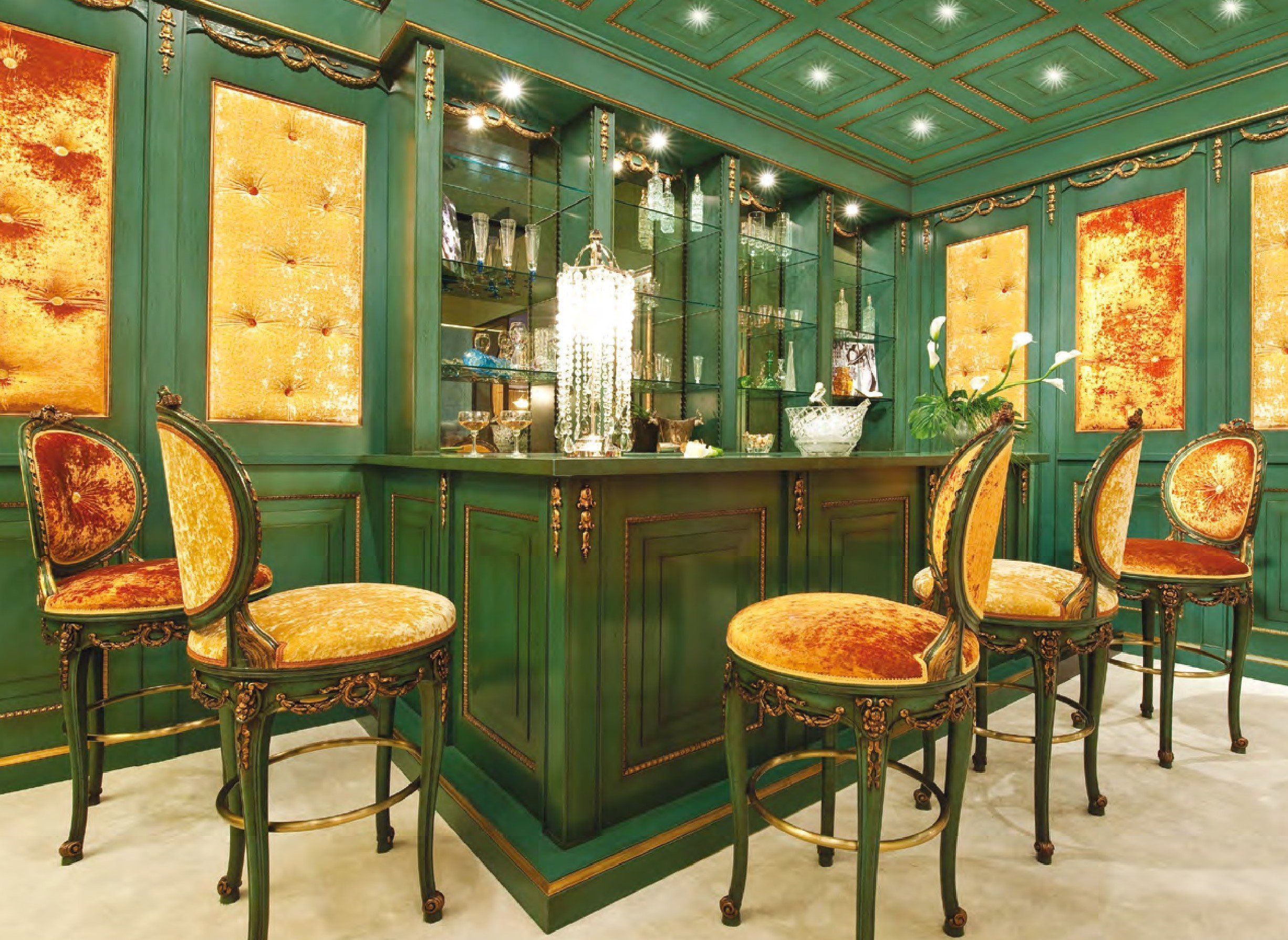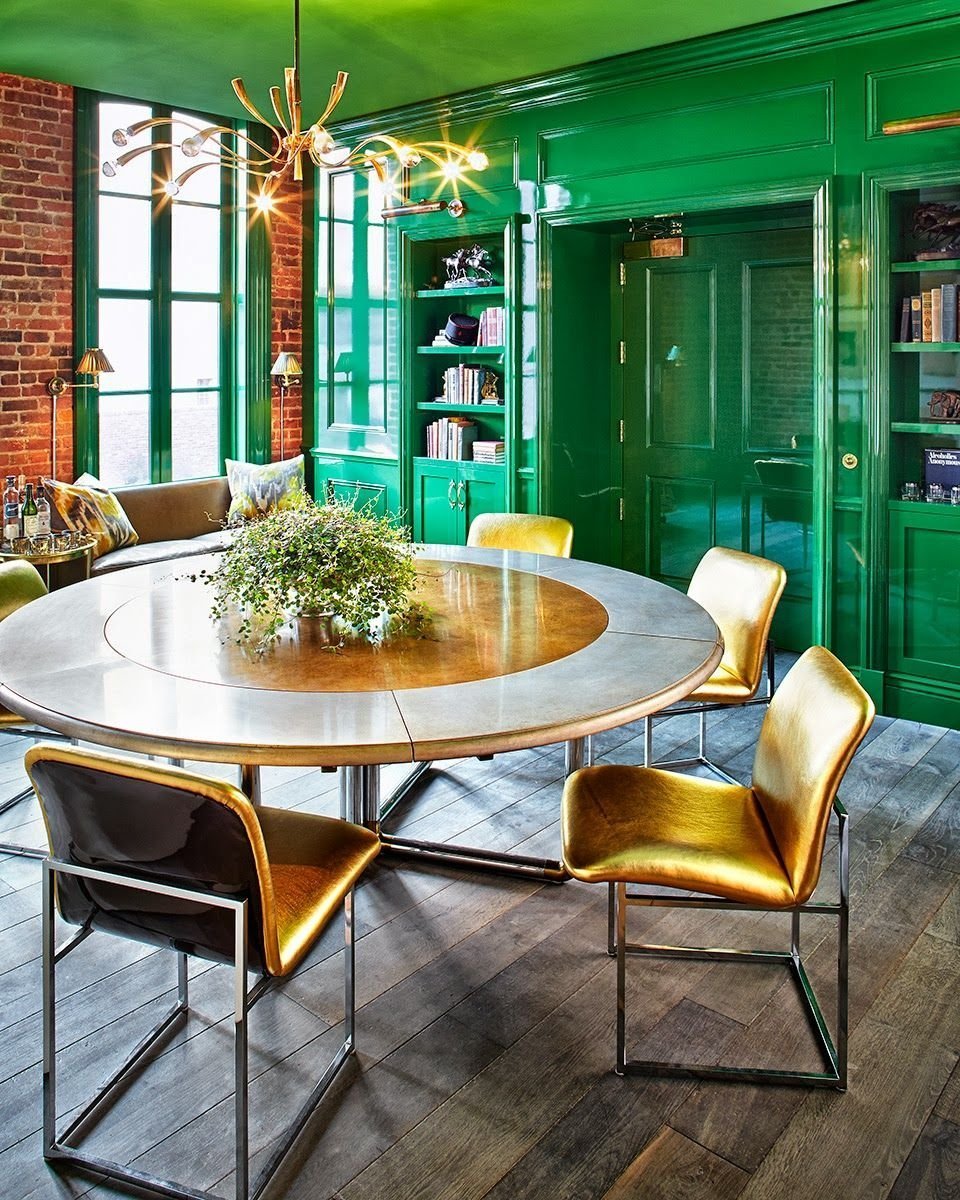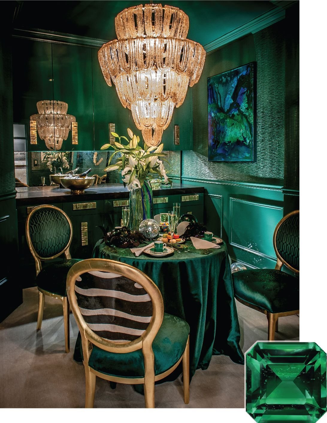 Изумрудный и золотой в интерьере