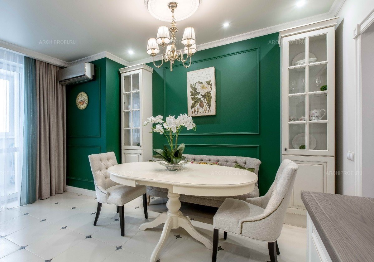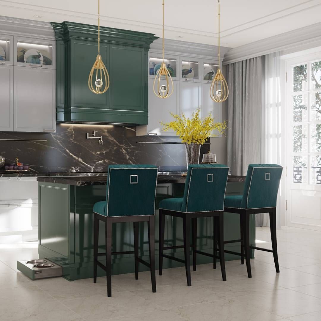 Изумрудный цвет в интерьере кухни