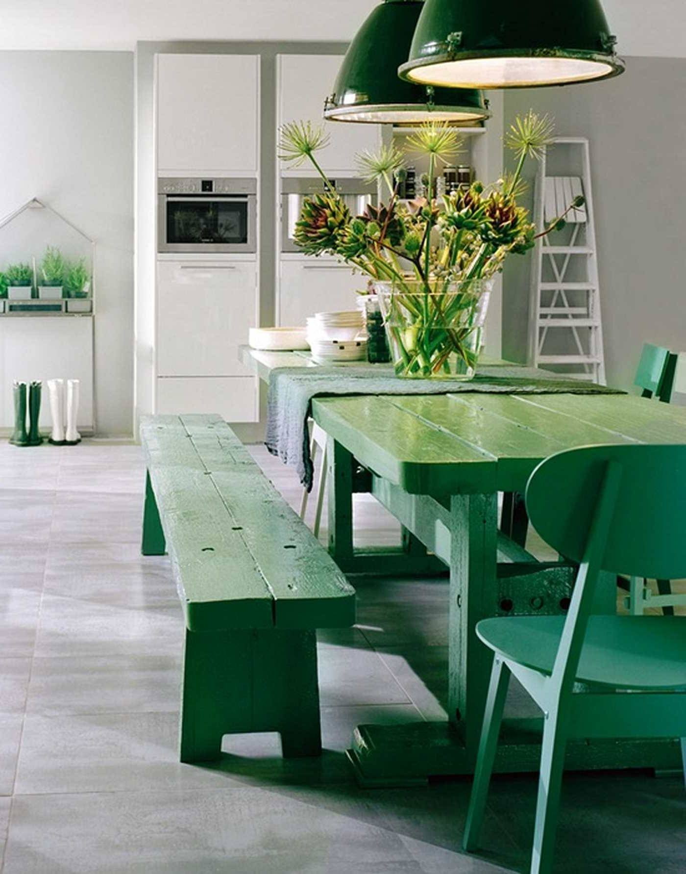 Зеленые стулья в интерьере